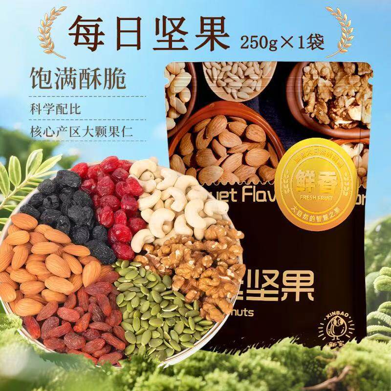 | Packaging specifications | Brazilian pine nuts bagged, net weight 250g*1,Brazilian pine nut filling net weight 500g,Macadamia nut bag, net weight 500g*1,Ziyi cashew nut bag net weight 250g*1,Thin-shell almond bag, net weight 250g*1,Grade a original color pistachio bag, net weight 250g*1,Large granular milky pecan bag, net weight 250g*1,Open pine nut bag, net weight 250g*1,Daily nut bag, net weight 250g*1,Paper-skinned walnut bag, net weight 250g*1,Amber walnut kernel bag, net weight 250g*1,Original almond kernels bag, net weight 250g*1,Milk-flavored melon seeds in bag, net weight 250g*1,Large granular milk puff chickpea bag, net weight 250g*1,Large crispy black bean bag, net weight 250g*1,Large granular crispy golden bean bag, net weight 250g*1,Crab roe flavored orchid bean bags net weight 250g*1,Beef flavored orchid beans bag, net weight 250g*1,Rattan pepper flavored orchid beans bag, net weight 250g*1,Spicy orchid bean bags net weight 250g*1,Caramel flavored melon seeds bag, net weight 250g*1,Walnut flavored melon seeds bagged, net weight 250g*1,Red date flavored melon seeds bag, net weight 250g*1,Five-flavored melon seeds bag, net weight 250g*1,Milk-flavored melon seeds in bag, net weight 250g*1,Original melon seeds bag, net weight 250g*1,Garlic peanut bag, net weight 250g*1,Walnut flavored peanut bag, net weight 250g*1,Creamy peanut bag, net weight 250g*1,Roasted peanuts in bag, net weight 250g*1,Drunkard peanuts bag net weight 250g*1,Charcoal roasted cashew nuts in bag, net weight 250g*1,Pumpkin seeds bagged net weight 250g*1,Beauty a melon seed bag, net weight 250g*1,Watermelon seeds bagged, net weight 250g*1 |