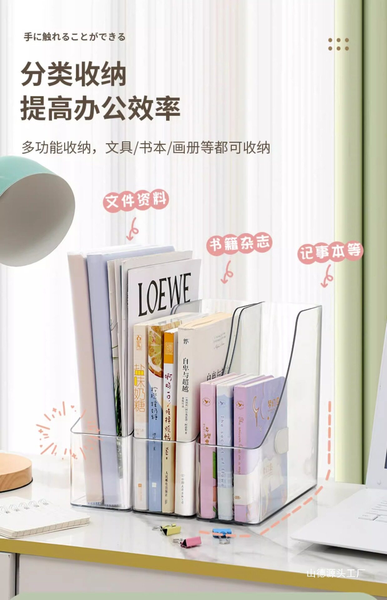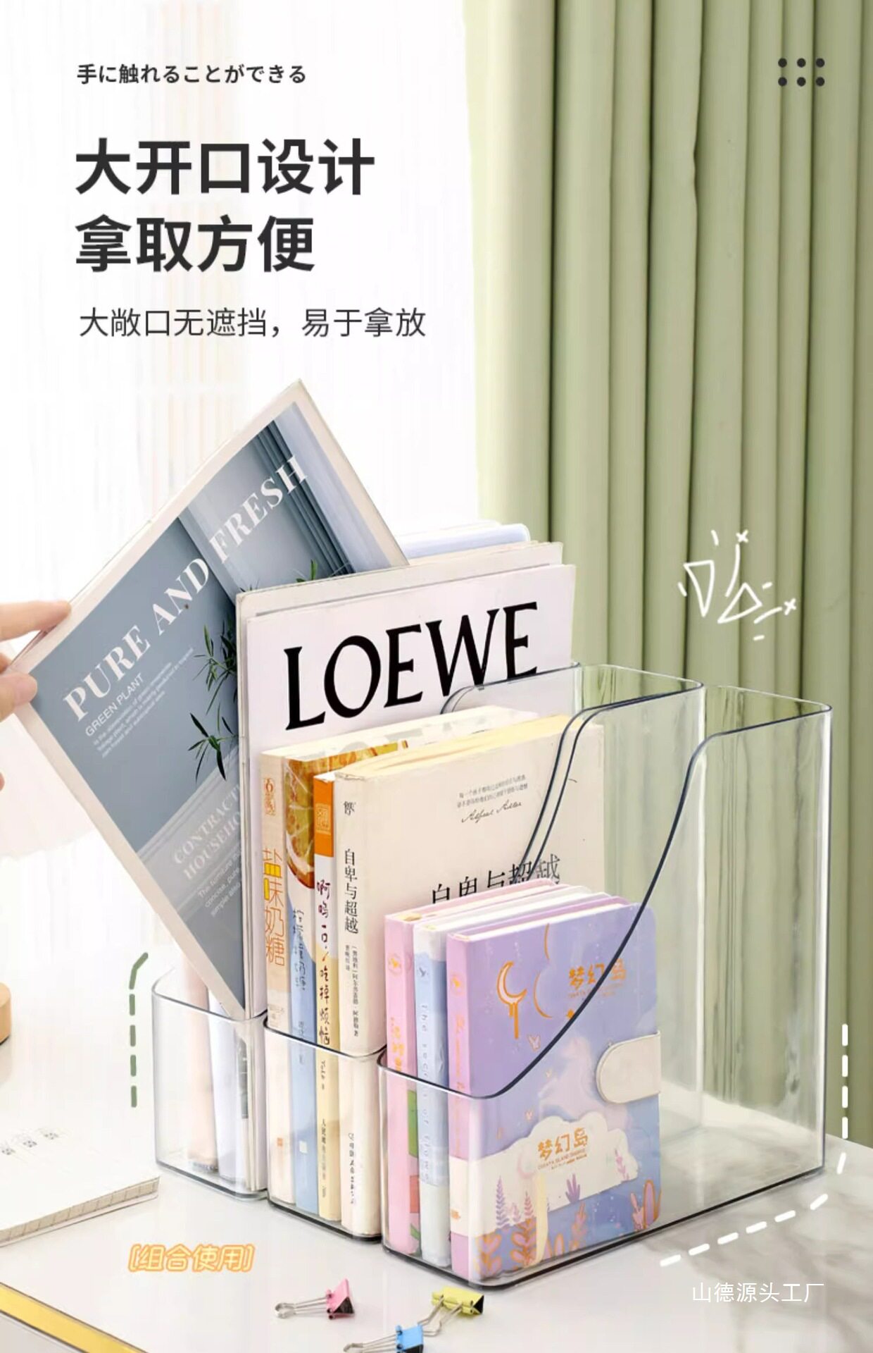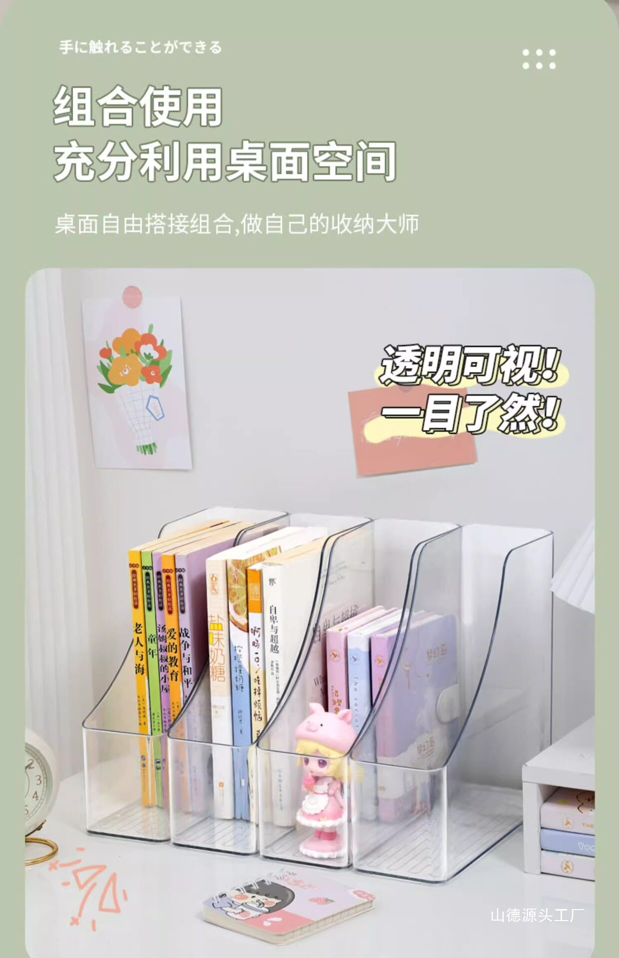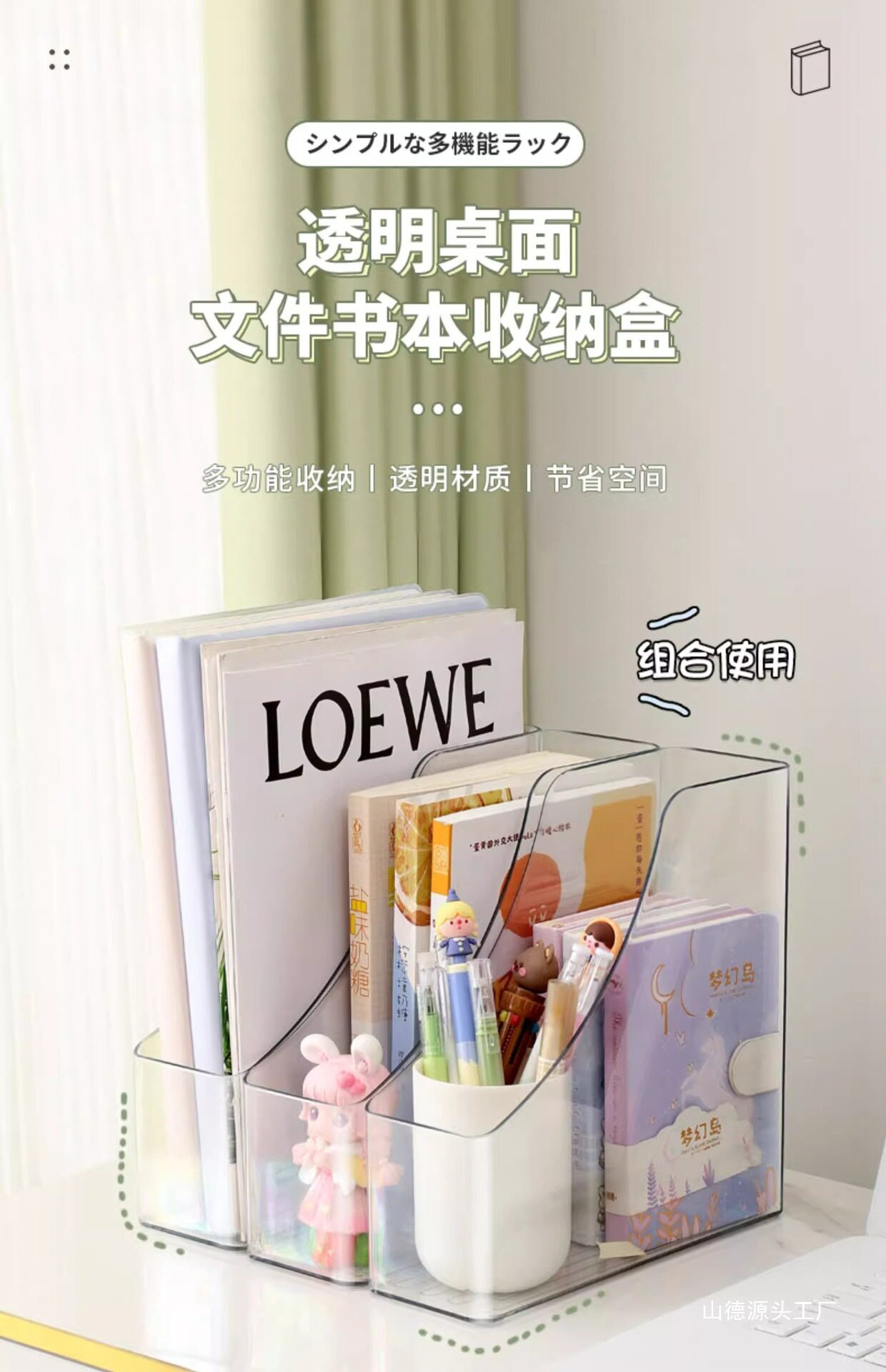 Transparent Desktop Bookshelf Desk Acrylic File Storage Box Bookshelf Office Student Book Organization Set