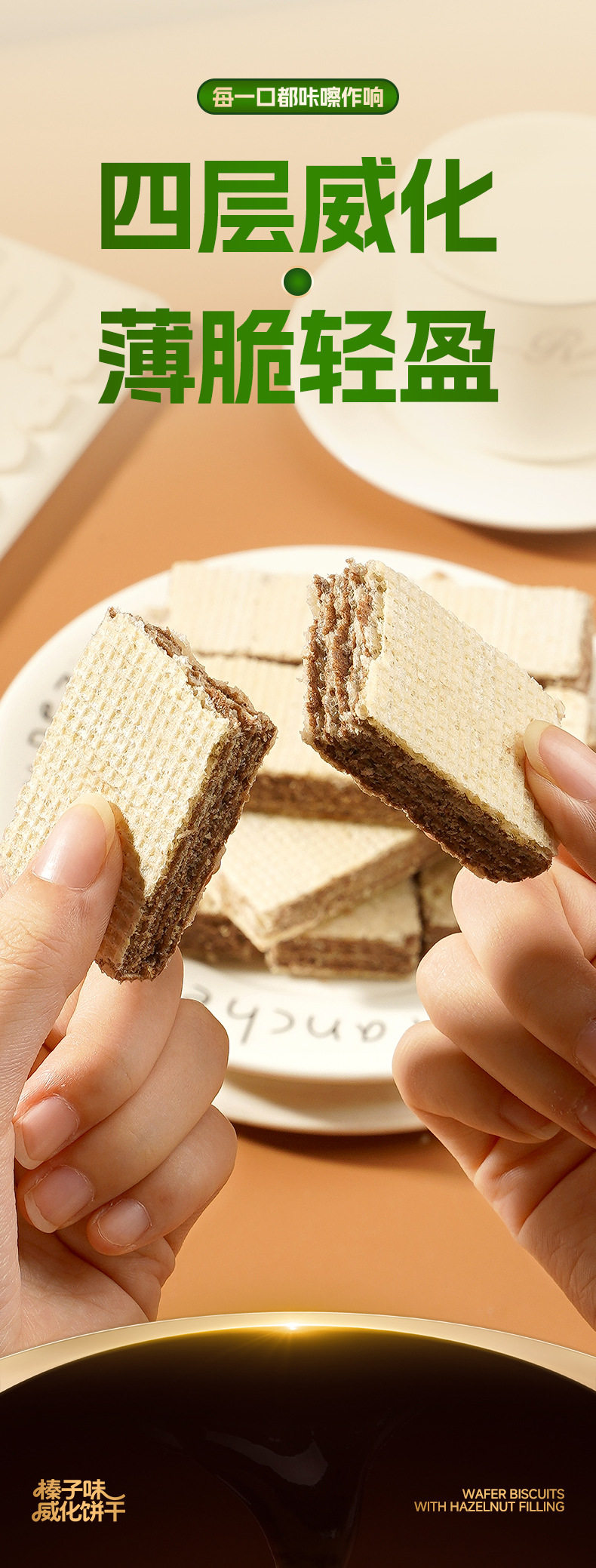| Packaging specifications | Hazelnut flavored wafer 250g x 1 box,Hazelnut flavored wafer 250g x 2 boxes,Hazelnut flavored wafers 250g x 3 boxes,Hazelnut flavored wafers 250g x 4 boxes,Hazelnut flavored wafers 12 packs,Hazelnut flavored wafers 24 packs,Hazelnut flavored wafers 48 packs,Hazelnut flavored wafers 2 packs |