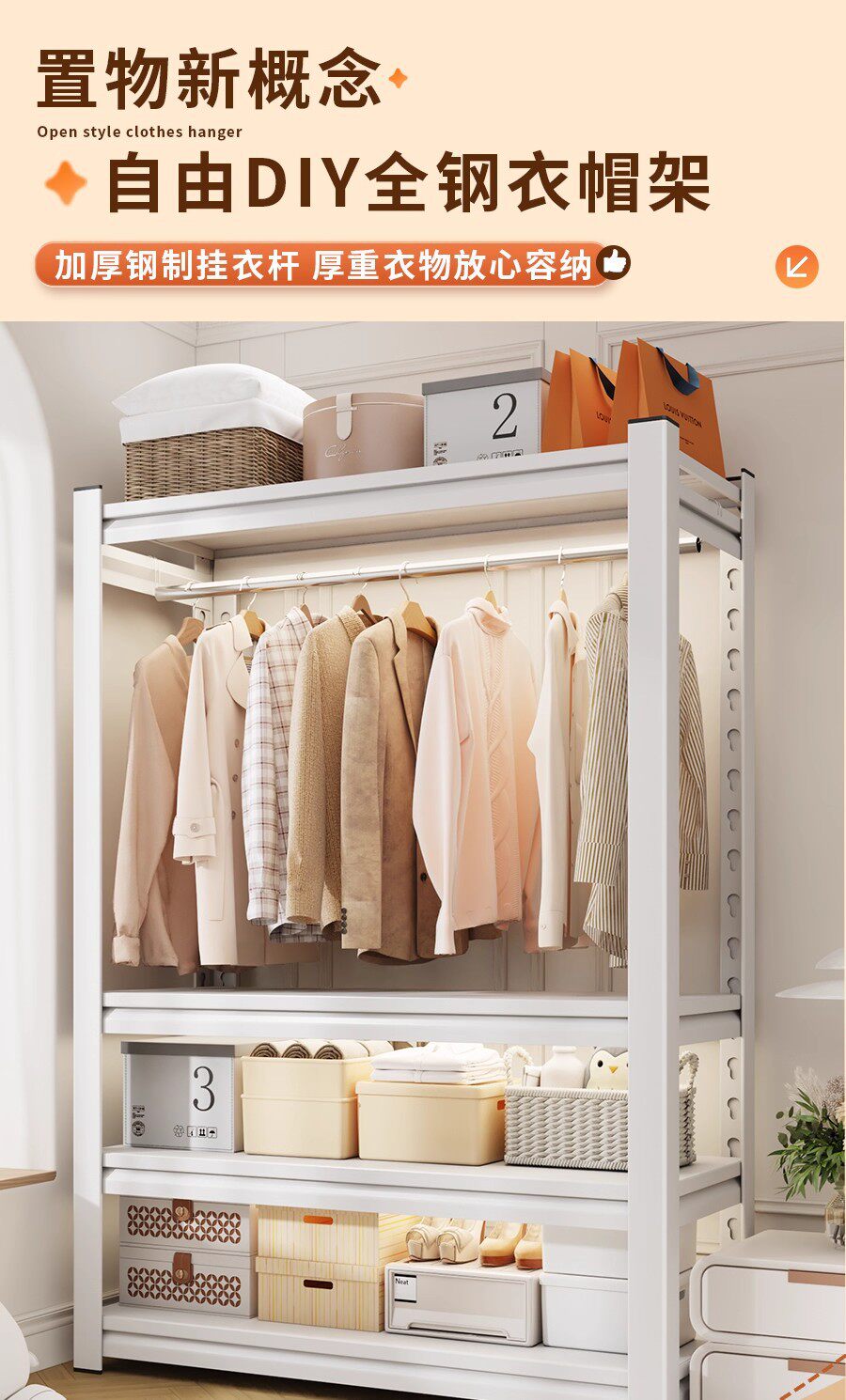 Shelf-Type Wardrobe Simple Assembly Perforated Board Coat Rack Bedroom Rental House Clothes Rack Steel Clothes Storage Rack