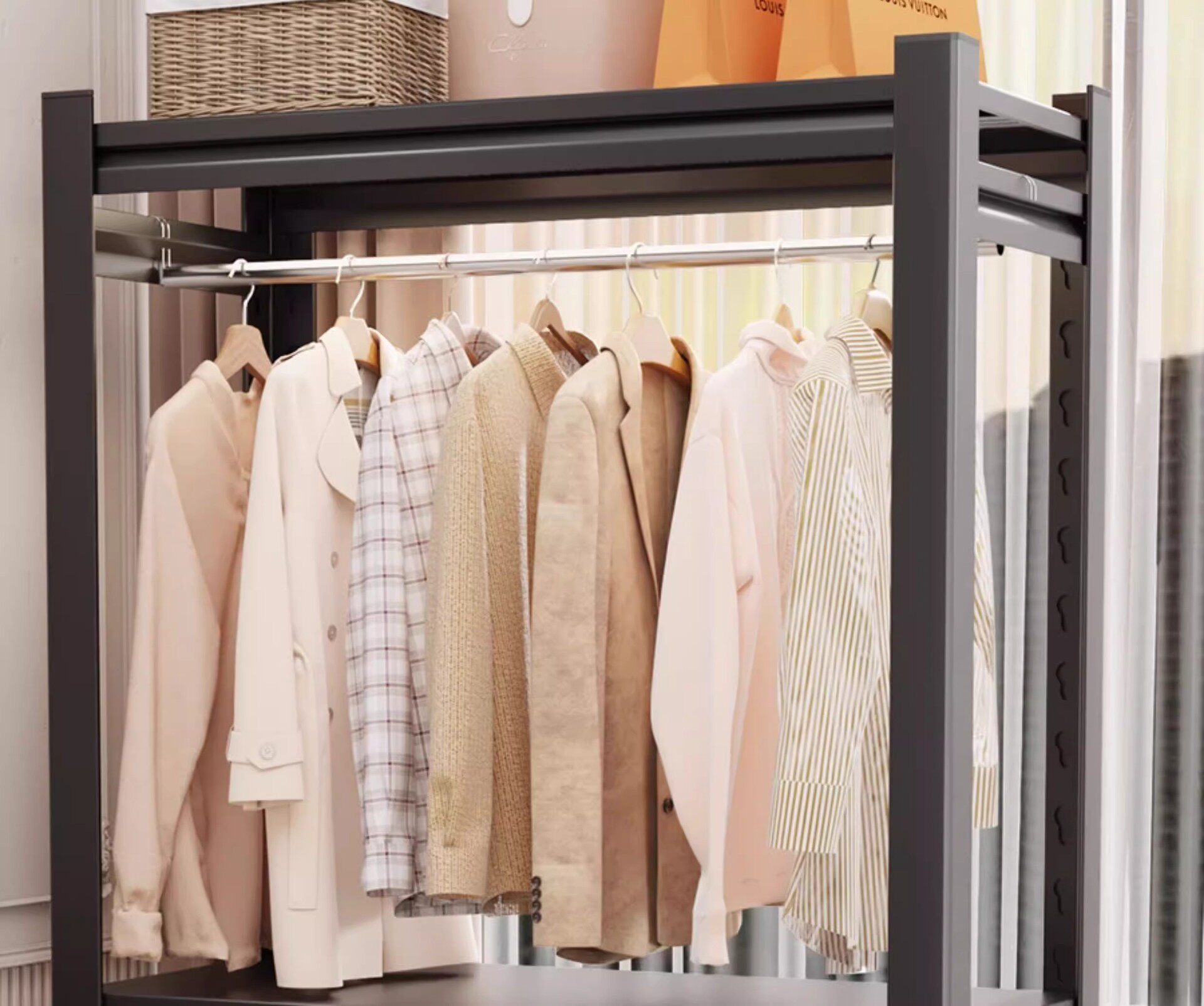 | Color | 3 floors high 160cm - black thickened [free clothes rail],3 floors high 183cm - black thickened [free clothes rail],3 floors high 198cm - black thickened [free clothes rail],4 floors high 183cm - black thickened [free clothes rail],4 floors high 198cm - black thickened [free clothes rail],4 floors high 236cm - black thickened [free clothes rail],5 floors high 183cm - black thickened [free clothes rail],5 floors high 198cm - black thickened [free clothes rail],3 floors high 160cm - black [free perforated board*1+dust-proof curtain*1+hanging clothes rail*1],3 floors high 183cm - black [free perforated board*1+dust-proof curtain*1+clothes rail*1],3 floors high 198cm - black [free perforated board*1+dust-proof curtain*1+hanging clothes rail*1],4 floors high 183cm - black [free perforated board*1+dust-proof curtain*1+clothes rail*1],4 floors high 198cm - black [free perforated board*1+dust-proof curtain*1+clothes rail*1],4 floors high 236cm - black [free perforated board*1+dust-proof curtain*1+hanging clothes rail*1] |