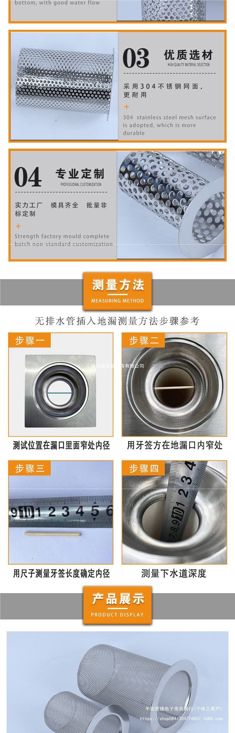 304 Stainless Steel Sewer Pipe Filter Bathroom Kitchen Floor Drain Anti-Blocking Anti-Hair Anti-Rat Mesh Cover Round