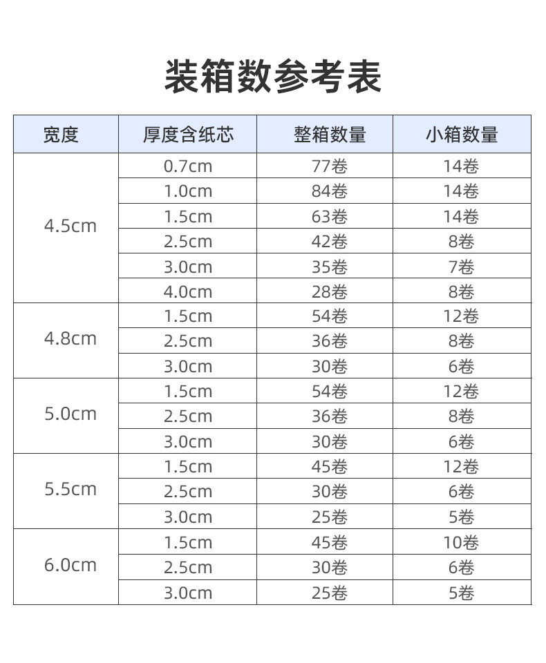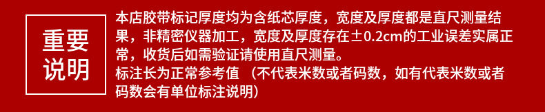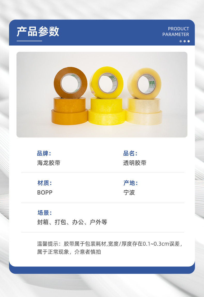 | Specification model | Transparent white; width 4.5×30×thickness 0.7 [full box of 77 rolls] small box of 14 rolls,Transparent white; width 4.5×100×thickness 1.5 [full box of 63 rolls] small box of 14 rolls,Transparent white; width 4.5×150×thickness 2.5 [full box of 42 rolls] small box of 8 rolls,Transparent white; width 4.5×200×thickness 3.0 [full box of 35 rolls] small box of 7 rolls,Transparent white; width 4.5×300×thickness 4.0 [full box of 28 rolls] small box of 8 rolls,Transparent yellow; width 4.5×30×thickness 0.7 [full box of 77 rolls] small box of 14 rolls,Transparent yellow; width 4.5×100×thickness 1.5 [full box of 63 rolls] small box of 14 rolls,Transparent yellow; width 4.5×150×thickness 2.5 [full box of 42 rolls] small box of 8 rolls,Transparent yellow; width 4.5×200×thickness 3.0 [full box of 35 rolls] small box of 7 rolls,Transparent yellow; width 4.5×300×thickness 4.0 [full box of 28 rolls] small box of 8 rolls,Beige; width 4.5×30×thickness 0.7 [full box of 77 rolls] small box of 14 rolls,Beige; width 4.5×100×thickness 1.5 [full box of 63 rolls] small box of 14 rolls,Beige; width 4.5×150×thickness 2.5 [full box of 42 rolls] small box of 8 rolls,Beige; width 4.5×200×thickness 3.0 [full box of 35 rolls] small box of 7 rolls,Beige; width 4.5×300×thickness 4.0 [full box of 28 rolls] small box of 8 rolls |