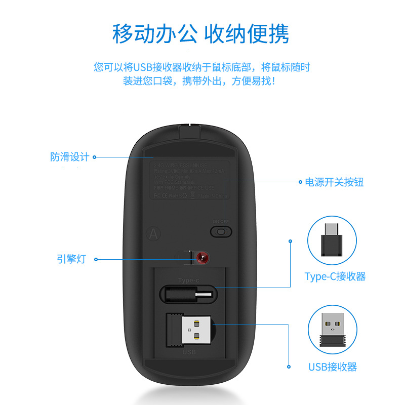 Factory spot new type-c Wireless Mouse +2.4G dual receiver charging mute cross-border e-commerce