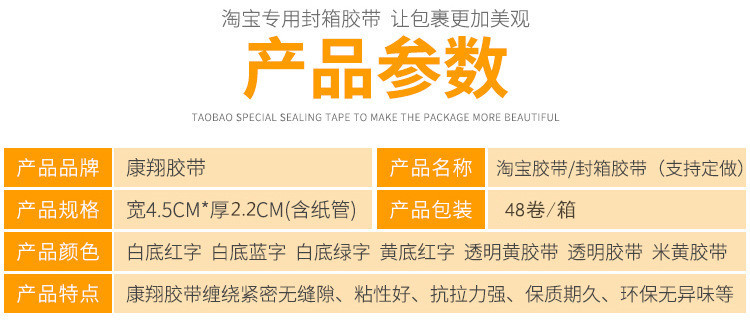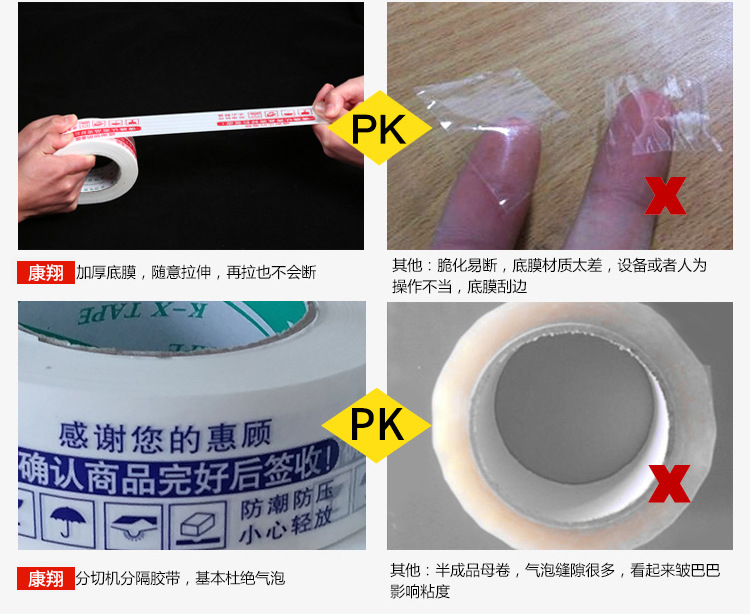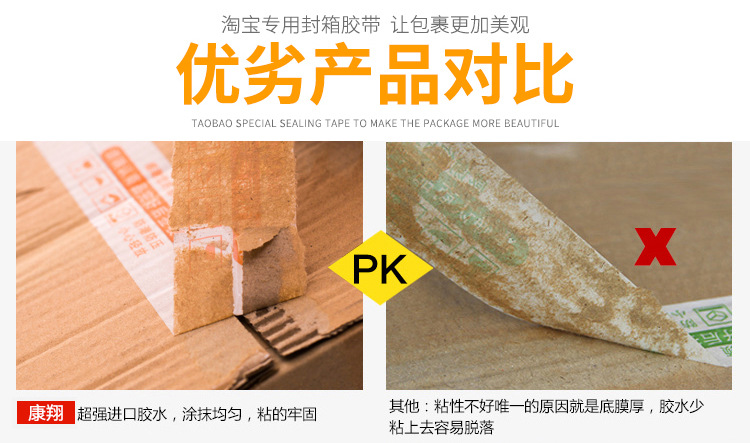 Kang Xiang red warning tape special express packing tape large roll transparent sealing tape wholesale tape
