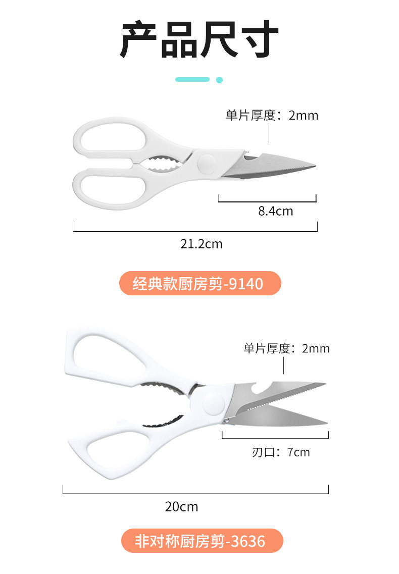 Japan komeki.9140. Household kitchen scissors stainless steel blade 2mm thick multi-use food scissors