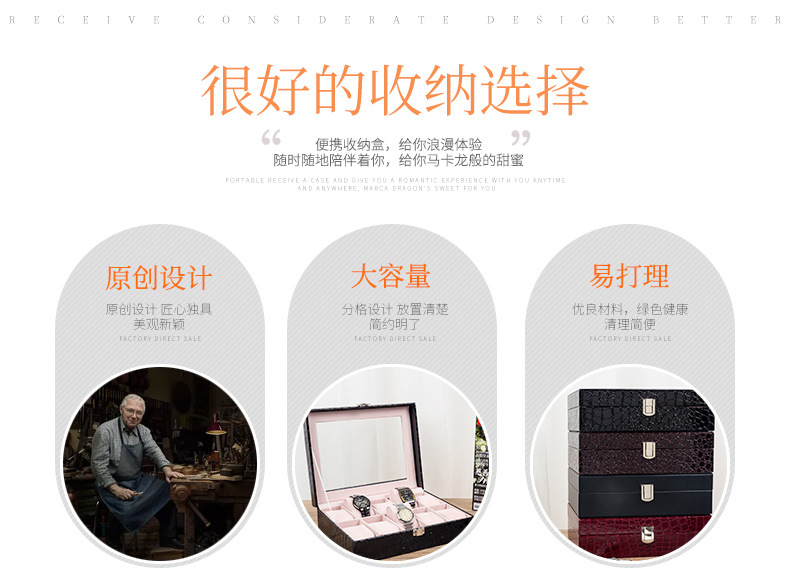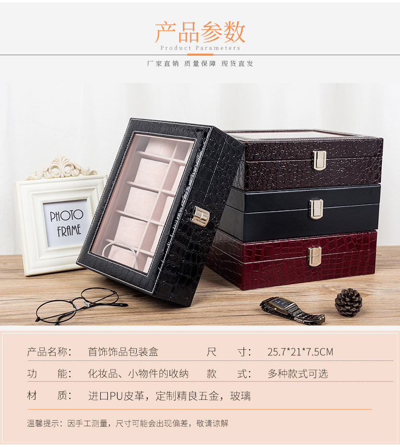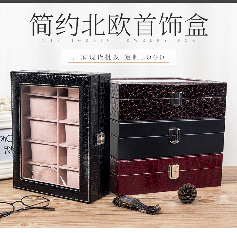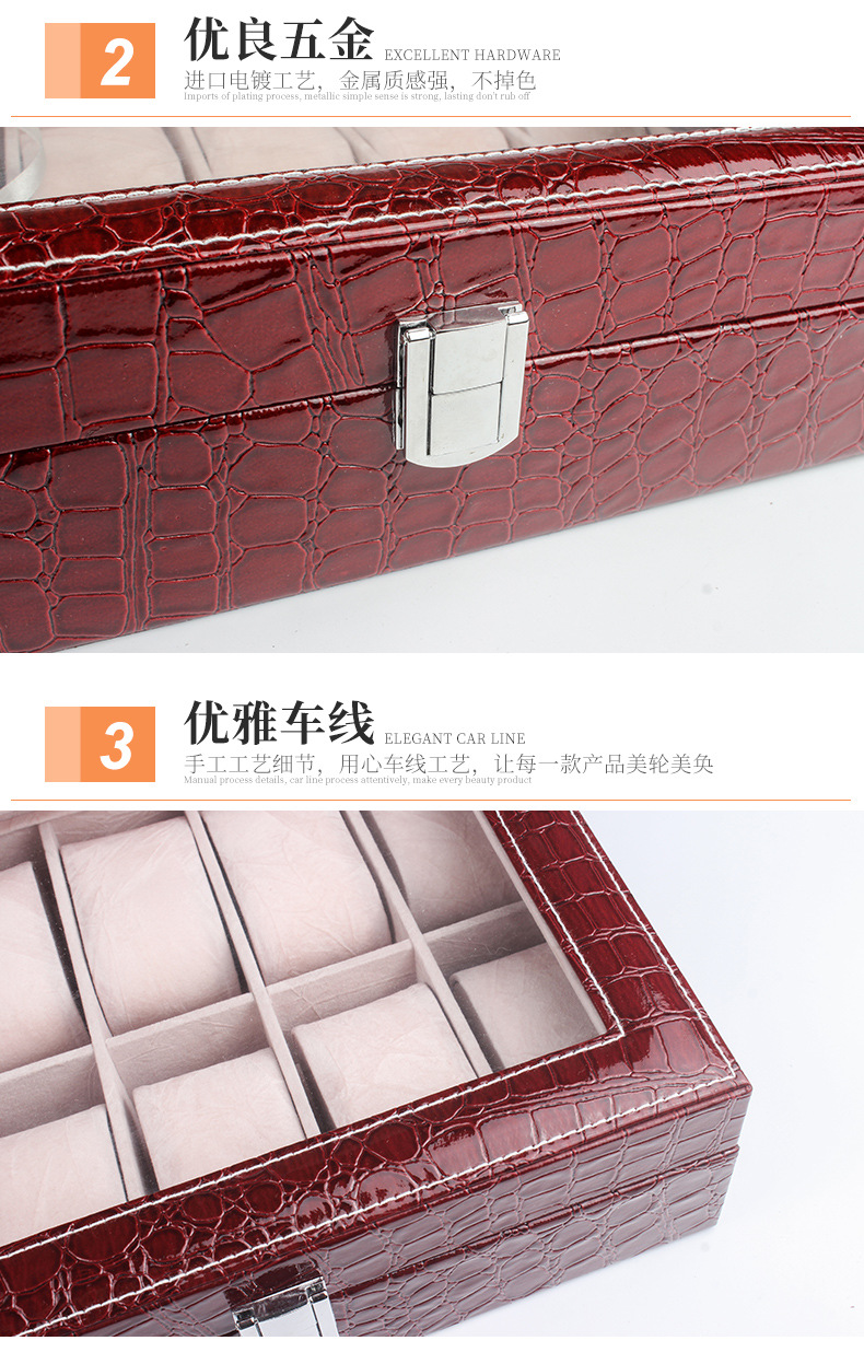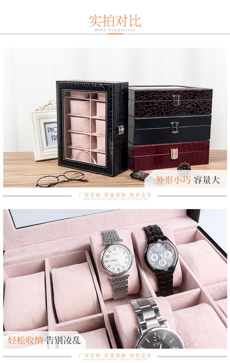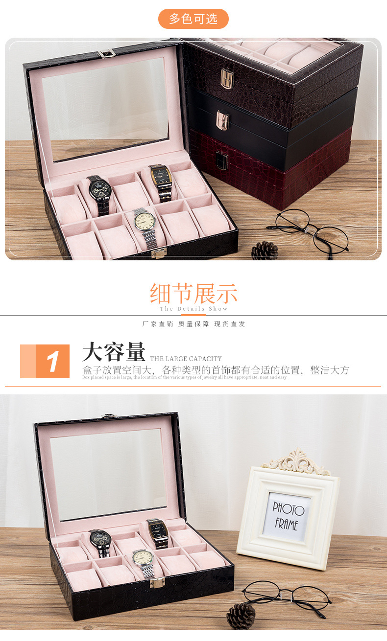 Wholesale Watch Box 10-Grids Crocodile Pattern Leather Display Watch Box Jewelry Packaging Box Ready for Sale