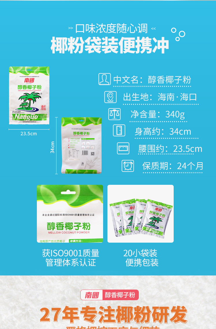 Hainan specialty Nanguo food mellow coconut powder 340g coconut milk coconut milk meal replacement leisure drink coconut milk