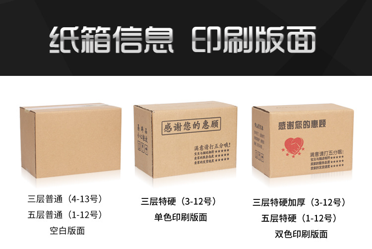 | Specifications and models | Three-layer ordinary blank package;no. 12,Three-layer ordinary blank package;no. 11,Three-layer ordinary blank package;no. 10,Three-layer ordinary blank package;no.9,Three-layer ordinary blank package;no. 8,Three-layer ordinary blank package;no. 7,Three-layer ordinary blank package;no. 6,Three-layer ordinary blank package;no. 5,Three-layer ordinary blank package;no. 4,Three-layer ordinary blank package;no. 3,Three-layer ordinary blank package;no. 2,Three-layer ordinary blank package;no.1,Three-layer ordinary blank package;small move: 50*40*40,Three-layer ordinary blank packageExtra large moving box: 60*40*50 cm,Three-layer ordinary blank package;standard large move: 60*40*50,Three-layer ordinary blank package;three layers of ordinary blank no. 13,Three-layer extra hard single-color printed package; no. 12,Three-layer extra hard single-color printed package; no. 11,Three-layer extra hard single-color printed package; no. 10,Three-layer extra hard single-color printed package; no. 9,Three-layer extra hard single-color printed package; no. 8,Three-layer extra hard single-color printed package; no. 7,Three-layer extra hard single-color printed package; no. 6,Three-layer extra hard single-color printed package; no. 5,Three-layer extra hard single-color printed package; no. 4,Three-layer extra hard single-color printed package; no. 3,Three-layer extra hard single-color printed package; no. 2,Three-layer extra hard single-color printed package; no. 1,Three-layer extra-hard, single-color printed packaging; small move: 50*40*40 cm,Three-layer extra-hard single-color printed packaging; extra-hard large moving box: 60*40*50 cm,Three-layer extra-hard, single-color printed moving box (full pack); standard large moving box: 60*40*50 cm,Three-layer extra-hard, single-color printed full pack; three-layer standard blank #13,Three-layer extra hard thickened double-printed package; no. 12,Three-layer extra hard thickened double-printed package; no. 11,Three-layer extra hard thickened double-printed package; no. 10,Three-layer extra hard thickened double-printed package; no. 9,Three-layer extra hard thickened double-printed package; no. 8,Three-layer extra hard thickened double-printed package; no. 7,Three-layer extra hard thickened double-printed package; no. 6,Three-layer extra hard thickened double-printed package; no. 5,Three-layer extra hard thickened double-printed package; no. 4,Three-layer extra hard thickened double-printed package; no. 3,Three-layer extra hard thickened double-printed package; no. 2,Three-layer extra hard thickened double-printed package; no. 1,Three-layer extra hard thickened double-printed package; small move: 50*40*40,Three-layer extra-hard, double-printed, full-pack; extra-hard for large moves: 60*40*50 cm,Three-layer extra hard thickened double-printed package; standard large move: 60*40*50,Three-layer extra hard thickened double-printed model in a whole package; three-layer ordinary blank no. 13,Five-layer extra hard double-printed package; no. 12,Five-layer extra hard double-printed package; no. 11,Five-layer extra hard double-printed package; no. 10,Five-layer extra hard double-printed package; no. 9,Five-layer extra hard double-printed package; no. 8,Five-layer extra hard double-printed package; no. 7,Five-layer extra hard double-printed package; no. 6,Five-layer extra hard double-printed package; no. 5,Five-layer extra hard double-printed package; no. 4,Five-layer extra hard double-printed package; no. 3,Five-layer extra hard double-printed package; no. 2,Five-layer extra hard double-printed package; no. 1,Five-layer extra-hard double-printed packaging; small move: 50*40*40 cm,Five-layer extra-hard double-printed packaging; extra-hard for large moves: 60*40*50 cm,Five-layer extra-hard double-printed packaging; standard large moving box: 60*40*50 cm,Five-layer extra-hard, double-printed, full pack; three-layer standard blank no. 13,Five-layer extra hard blank package; no. 12,Five-layer extra hard blank package; no. 11,Five-layer extra hard blank package; no. 10,Five-layer extra hard blank package; no. 9,Five-layer extra hard blank package; no. 8,Five-layer extra hard blank package; no. 7,Five-layer extra hard blank package; no. 6,Five-layer extra hard blank package; no. 5,Five-layer extra hard blank package; no. 4,Five-layer extra hard blank package; no. 3,Five-layer extra hard blank package; no. 2,Five-layer extra hard blank package; no. 1,Five-layer extra-hard blank moving box, full pack; small move: 50*40*40 cm,Five-layer extra-hard blank moving box, full pack; extra-large heavy-duty moving box: 60*40*50 cm,Five-layer extra-hard blank moving box, full pack; standard large move: 60*40*50 cm,Five-layer extra-hard blank model in a whole pack; three-layer ordinary blank no. 13 |