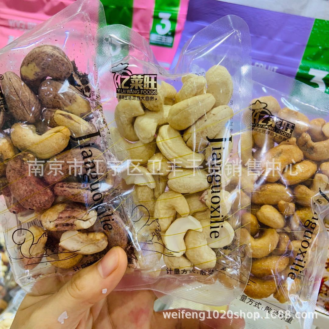 | Packaging specifications | Original fragrant cashew nut 5kg,Cashew nut with clothes 5kg,Charcoal roasted cashew nut 5kg,Almond 5kg,Open pine nuts 5kg,Colorful nuts 5kg,Pistachio 5 Jin,Dried fruit 5kg,Mixed dried fruit 5kg,Banana slices 7 Jin,Cream Fragrant Concubine dried 10 jin,Bigenguo 5kg,Hawaii fruit 5kg,Tangerine Peel Flavor Crispy Cashew 5 Jin,Mustard flavor crispy macadamia fruit 6 Jin,Salted egg yolk flavor Hawaiian Fruit 6 Jin,Happy NUTS 3 Jin |