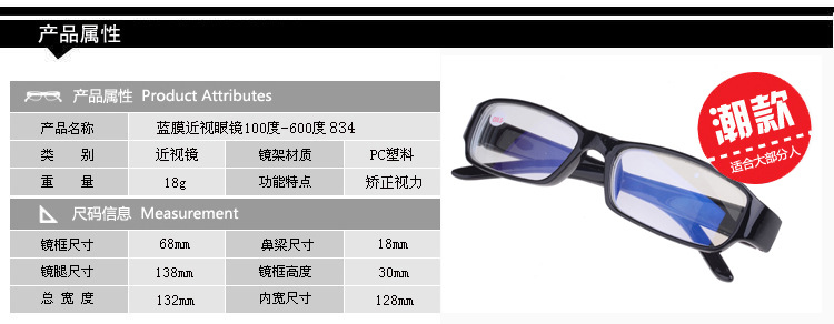Comfortable anti-fatigue classic blue film myopia glasses unisex glasses frame with film myopia glasses wholesale