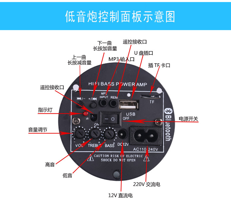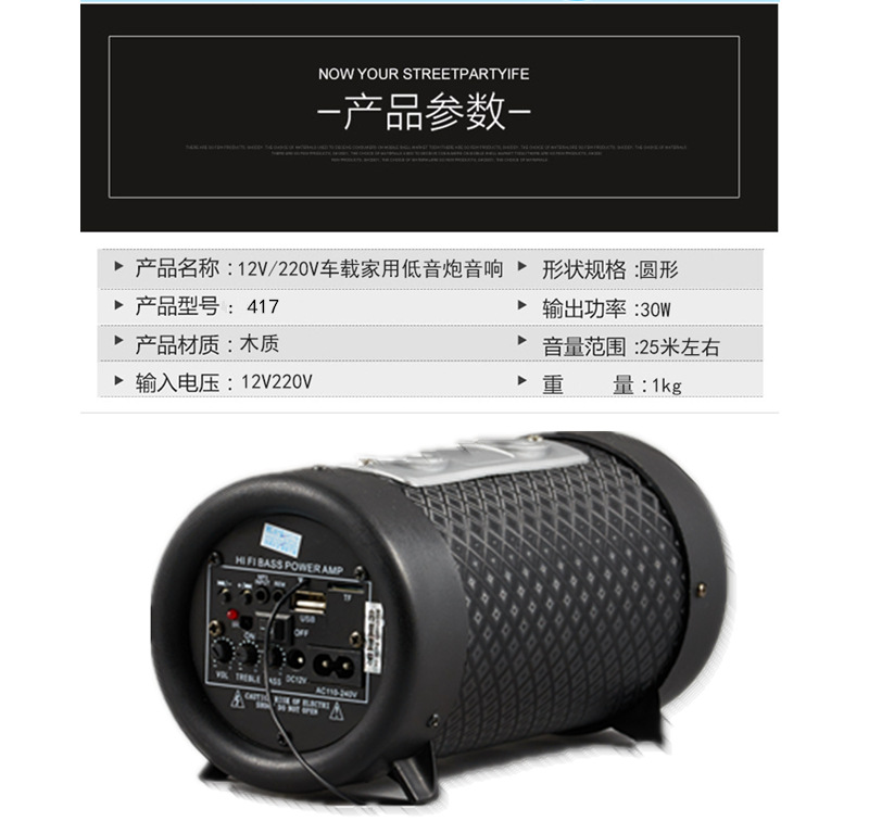 Subwoofer 4 inch Bluetooth card dual-use car motorcycle 12v220v Bluetooth FM audio new product