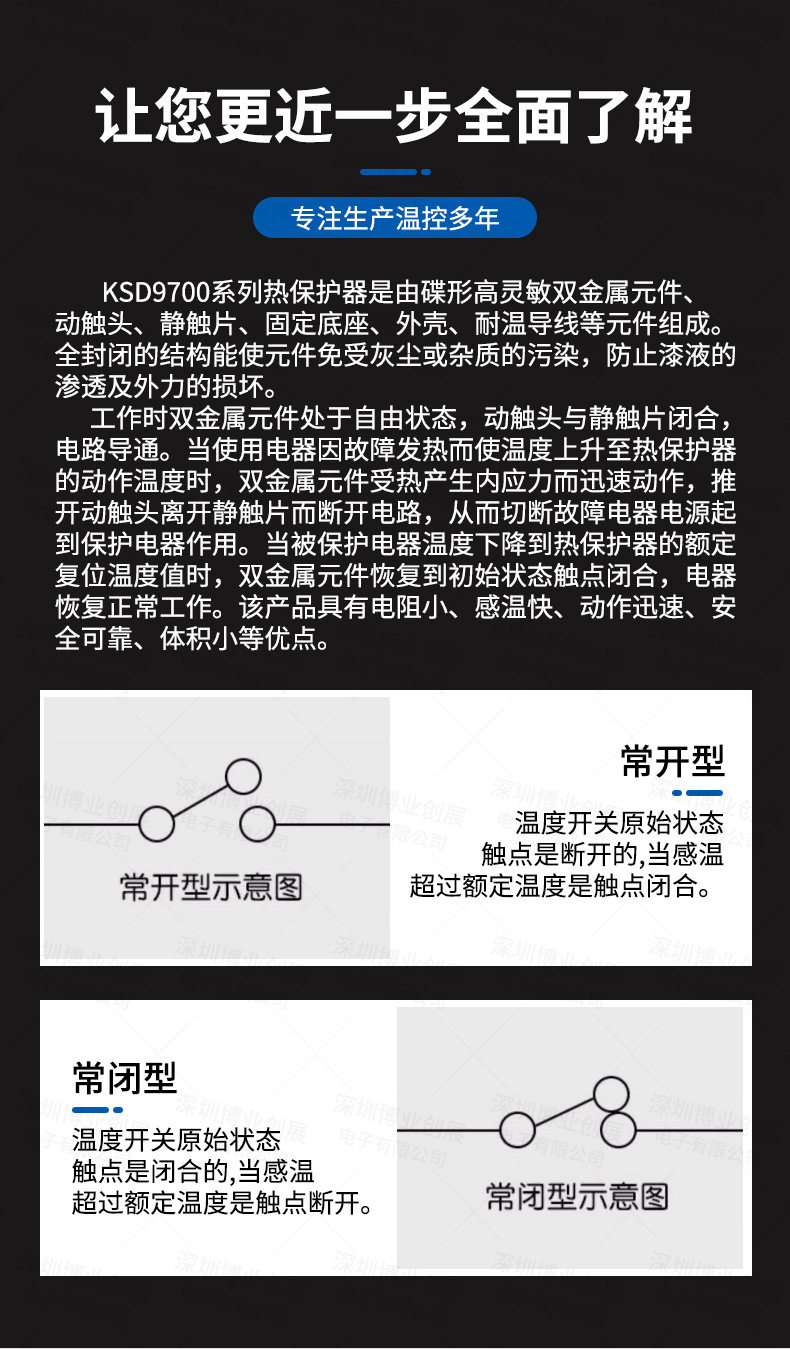 KSD9700 thermal protector 0 degree ~ 230 degree high temperature thermostat low temperature thermal protector 250 degree thermostat