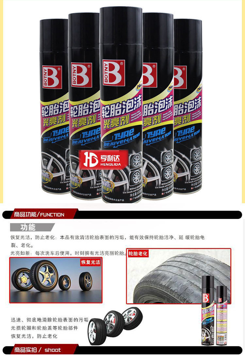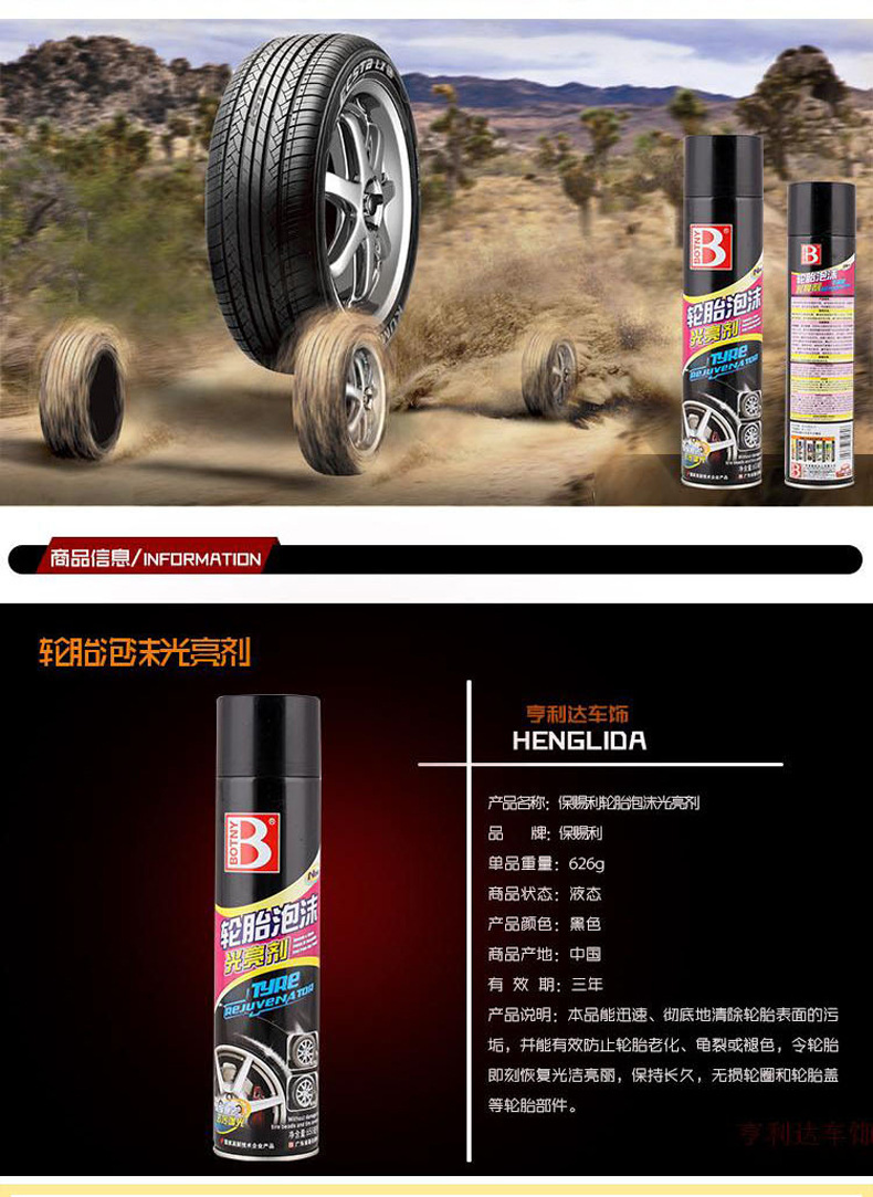 Baotili Car Tire Wax Tire Foam Anti-Aging Beauty Care Cleaning Agent B-1107 Cleaning
