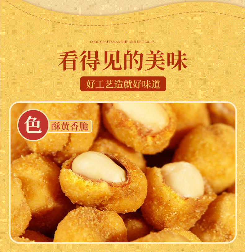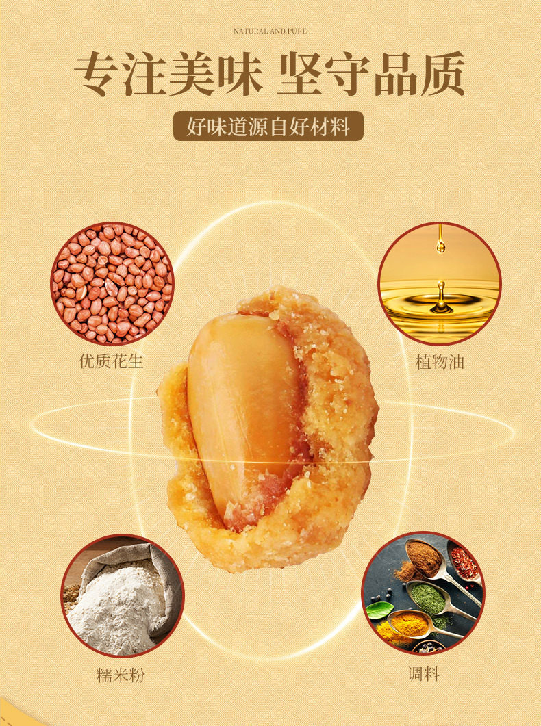 | Raw materials and ingredients | Peanut kernels, glutinous rice flour, refined vegetable oil, white sugar, maltose syrup, corn starch, five-spice seasoning, curry powder |