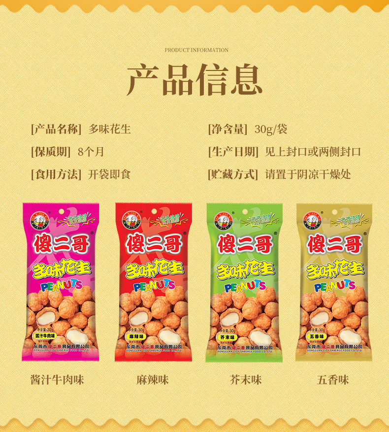 Silly Er Ge 30g*10 Packs/Set Multi-Flavor Peanuts Spicy Mustard Five-Spice Roasted Seeds and Nuts Snacks Casual Snack Food