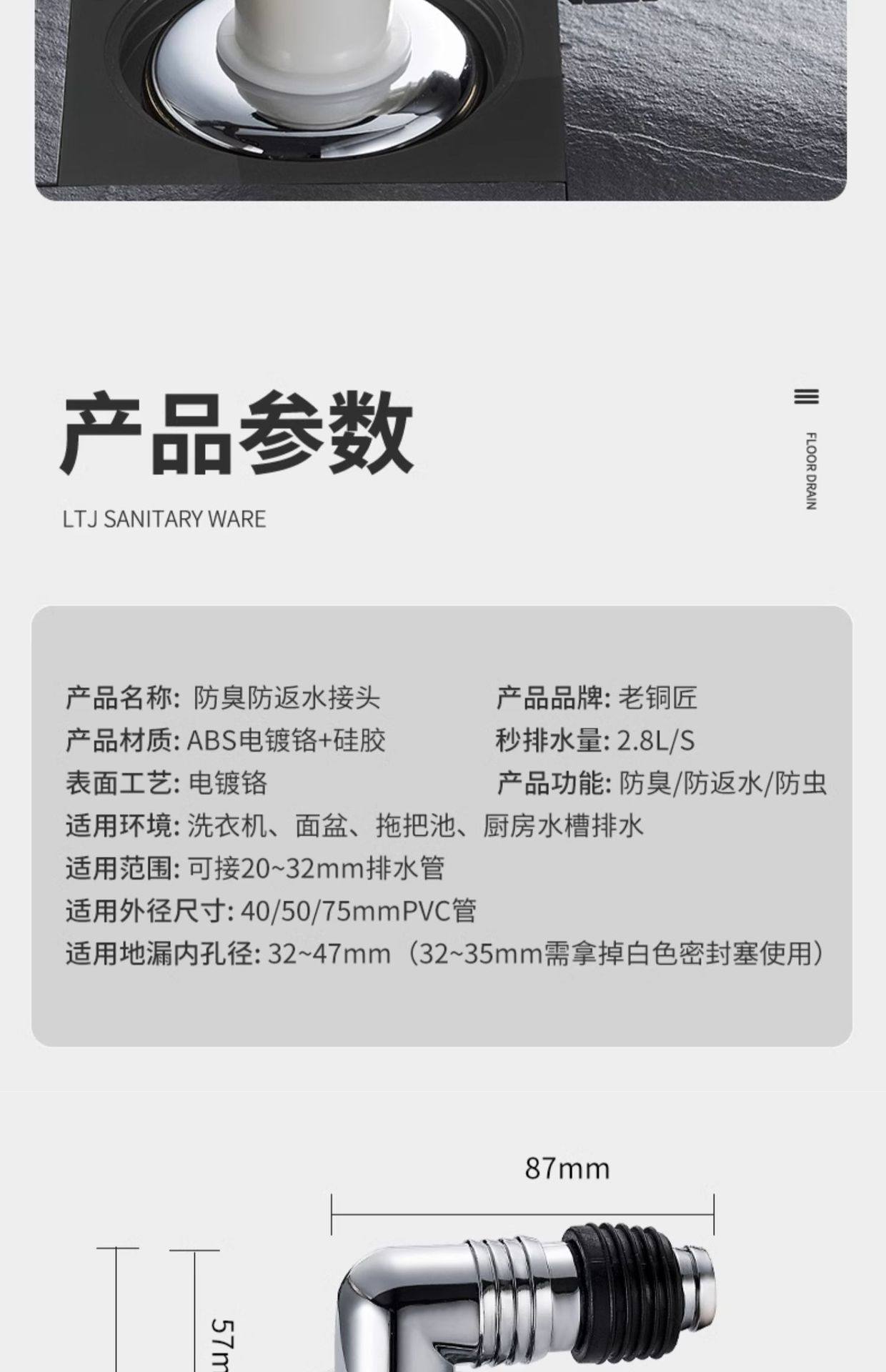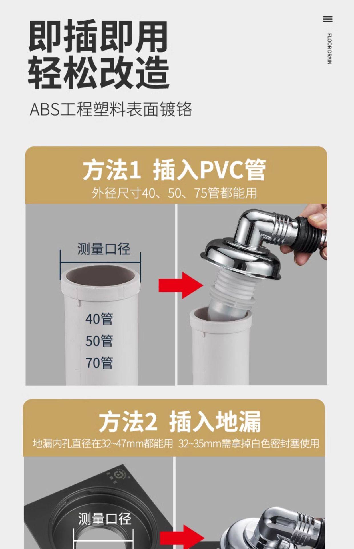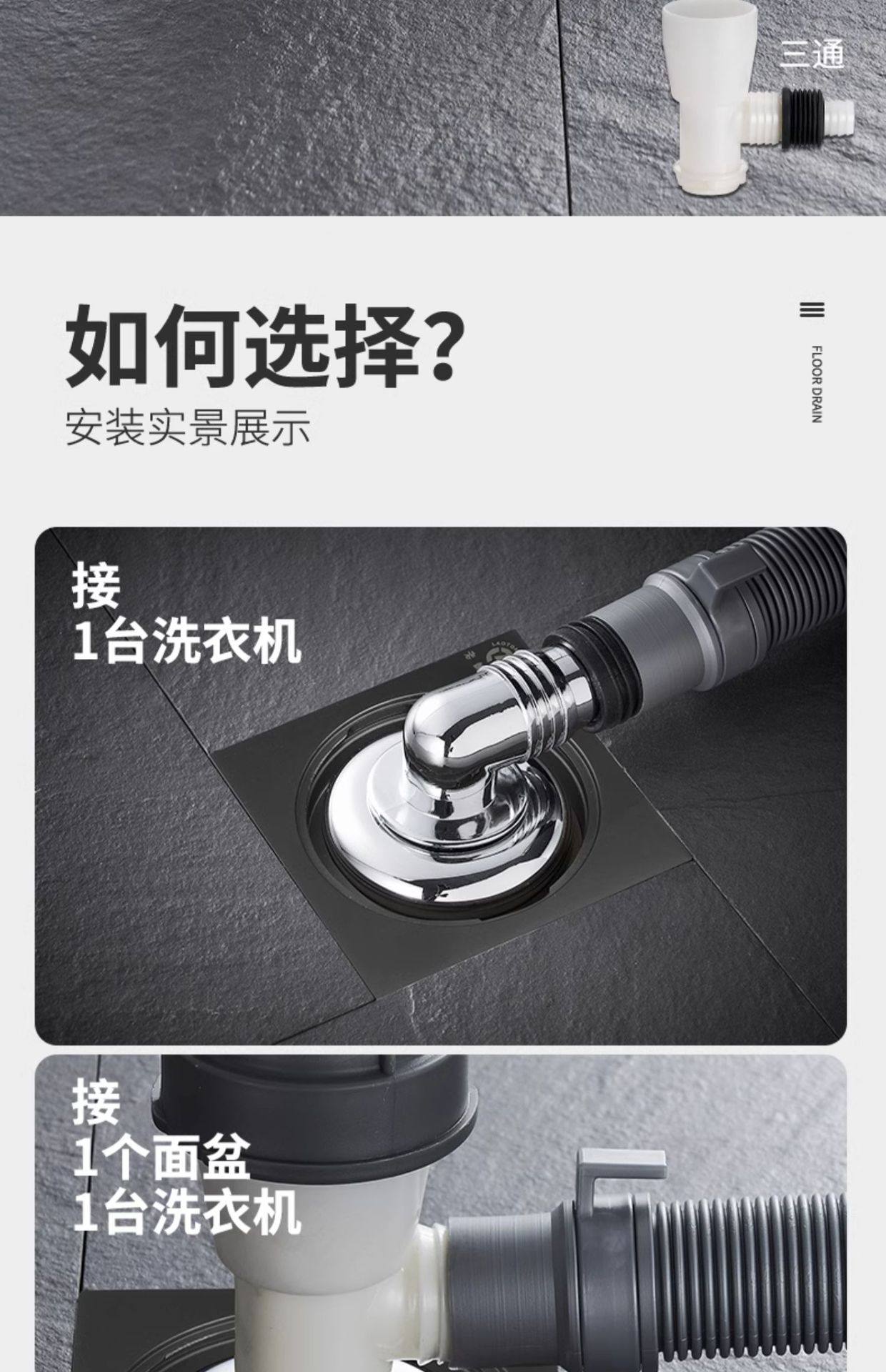 Specification Drain tee (without floor drain cover),Washing machine floor drain elbow (single elbow does not include floor drain),Washing machine floor drain plug + tee (with floor drain cover),Washing machine floor drain plug + elbow (with floor drain cover)