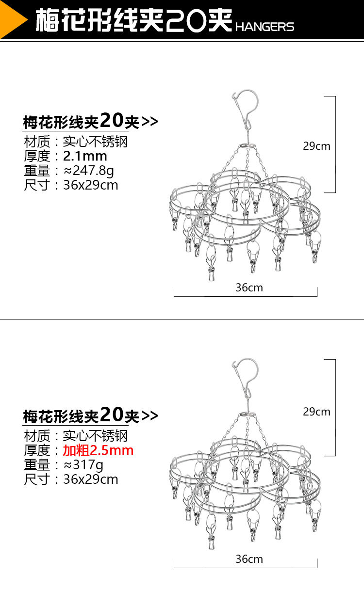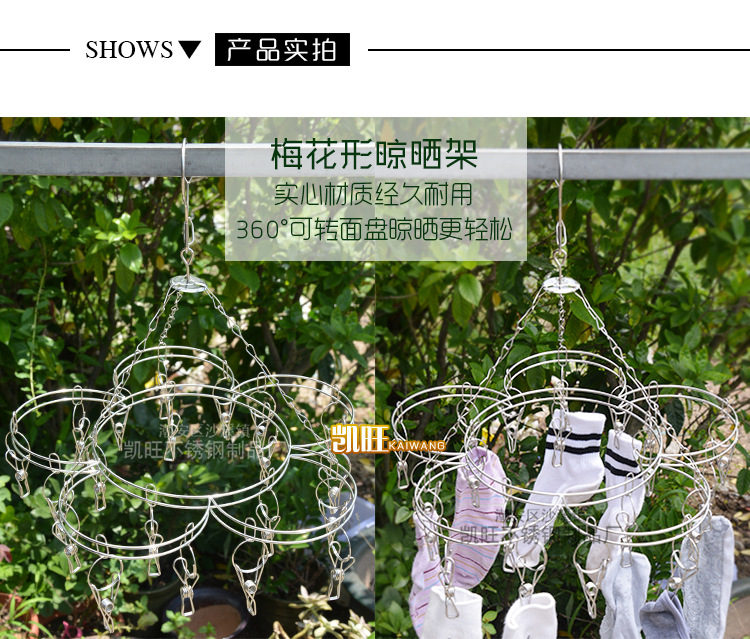 Kaiwang Stainless Steel Sock Rack Plum Blossom-Shaped Sock Rack Solid 20 Clip Sock Drying Rack Multi-Head Clothes Drying Rack Wholesale
