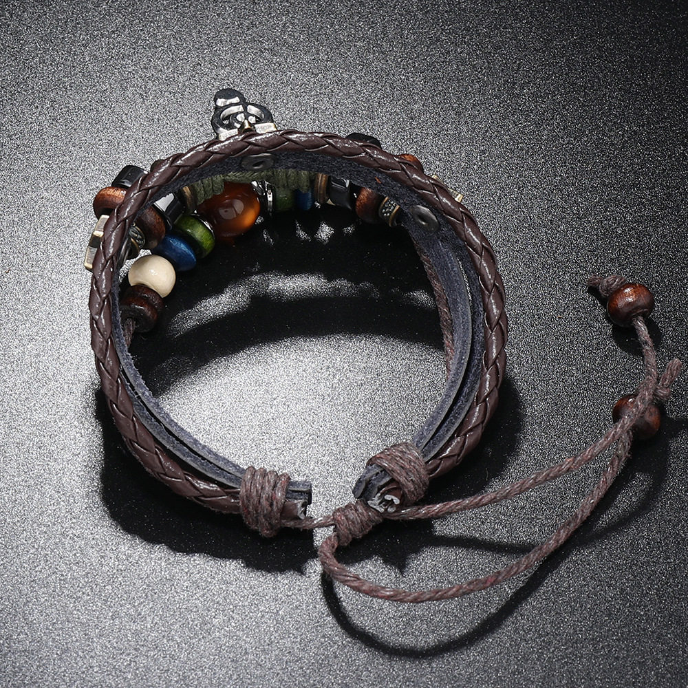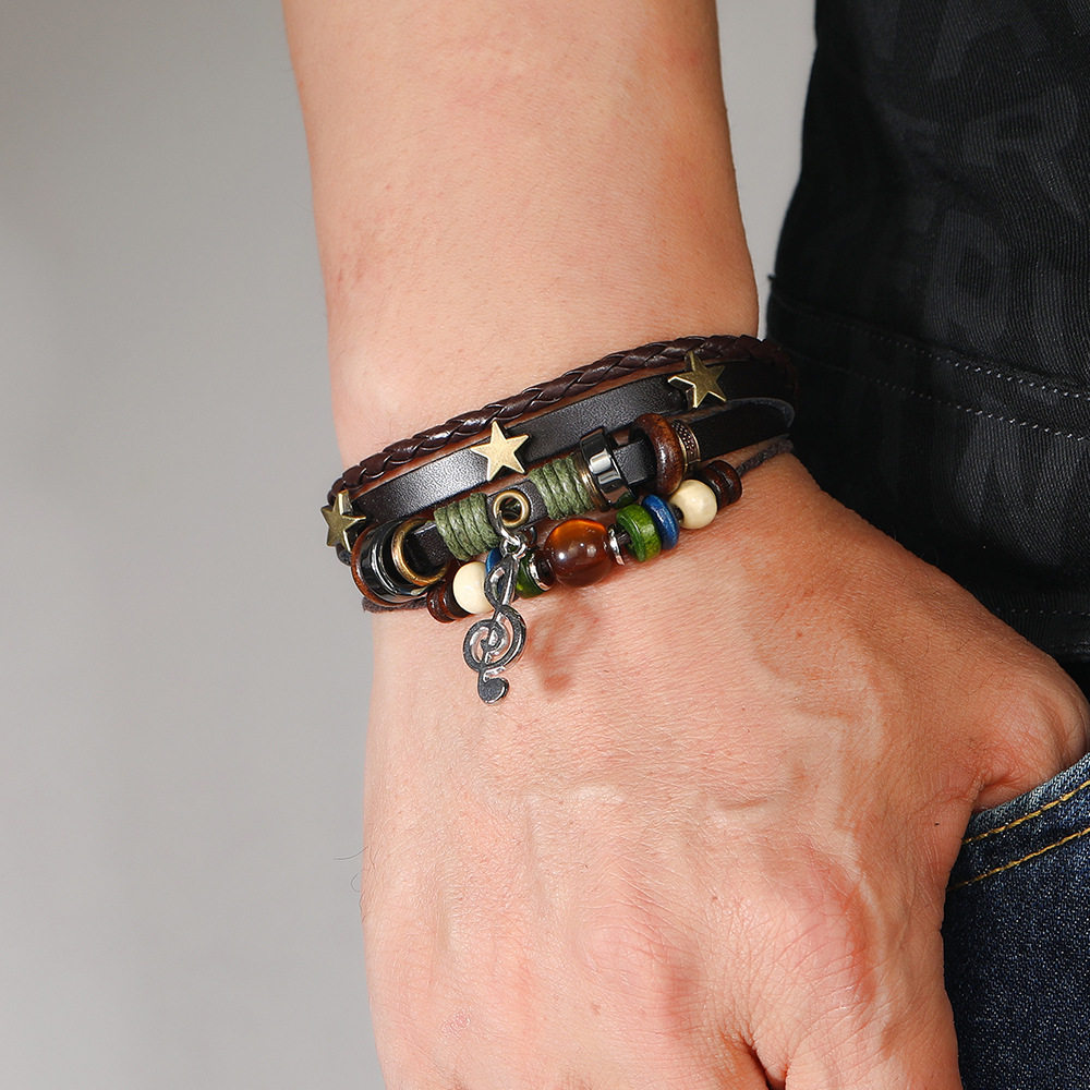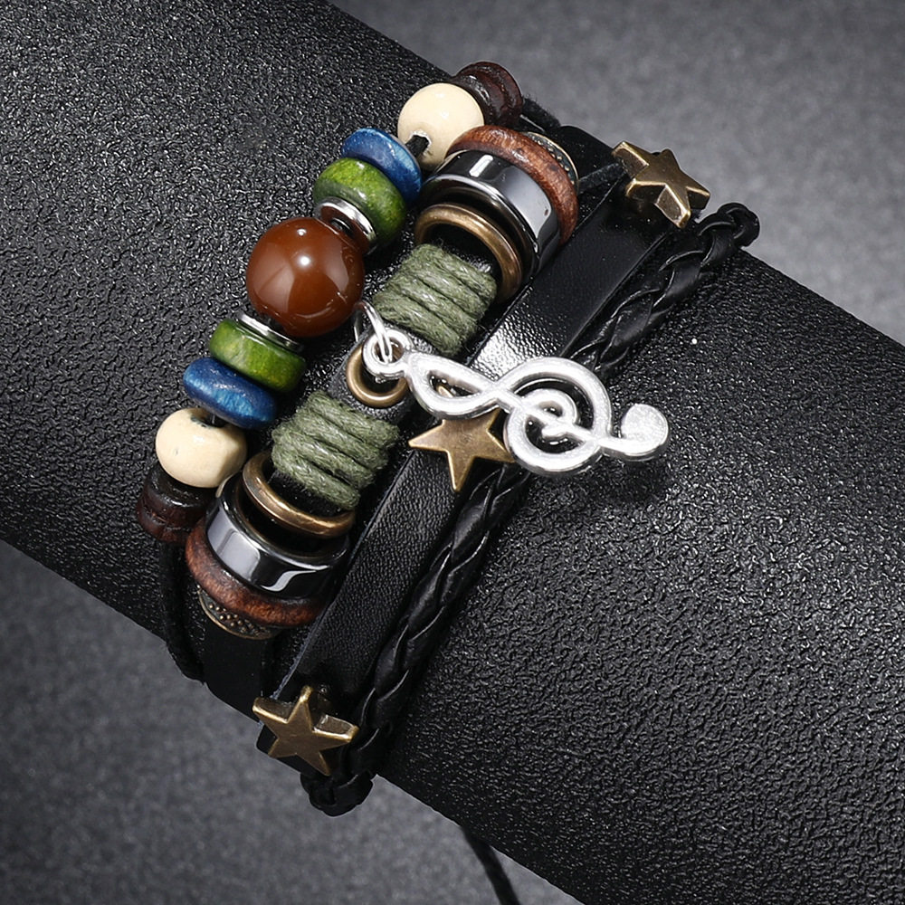 Cross-border New Jewelry Simple Multi-layer Beaded Leather Bracelet Personalized Note Pendant Bracelet Music Festival Accessories