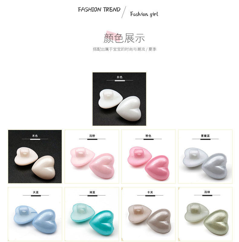 Spot wholesale color pearl button White love heart shape peach button shirt knitted dress children's clothing button