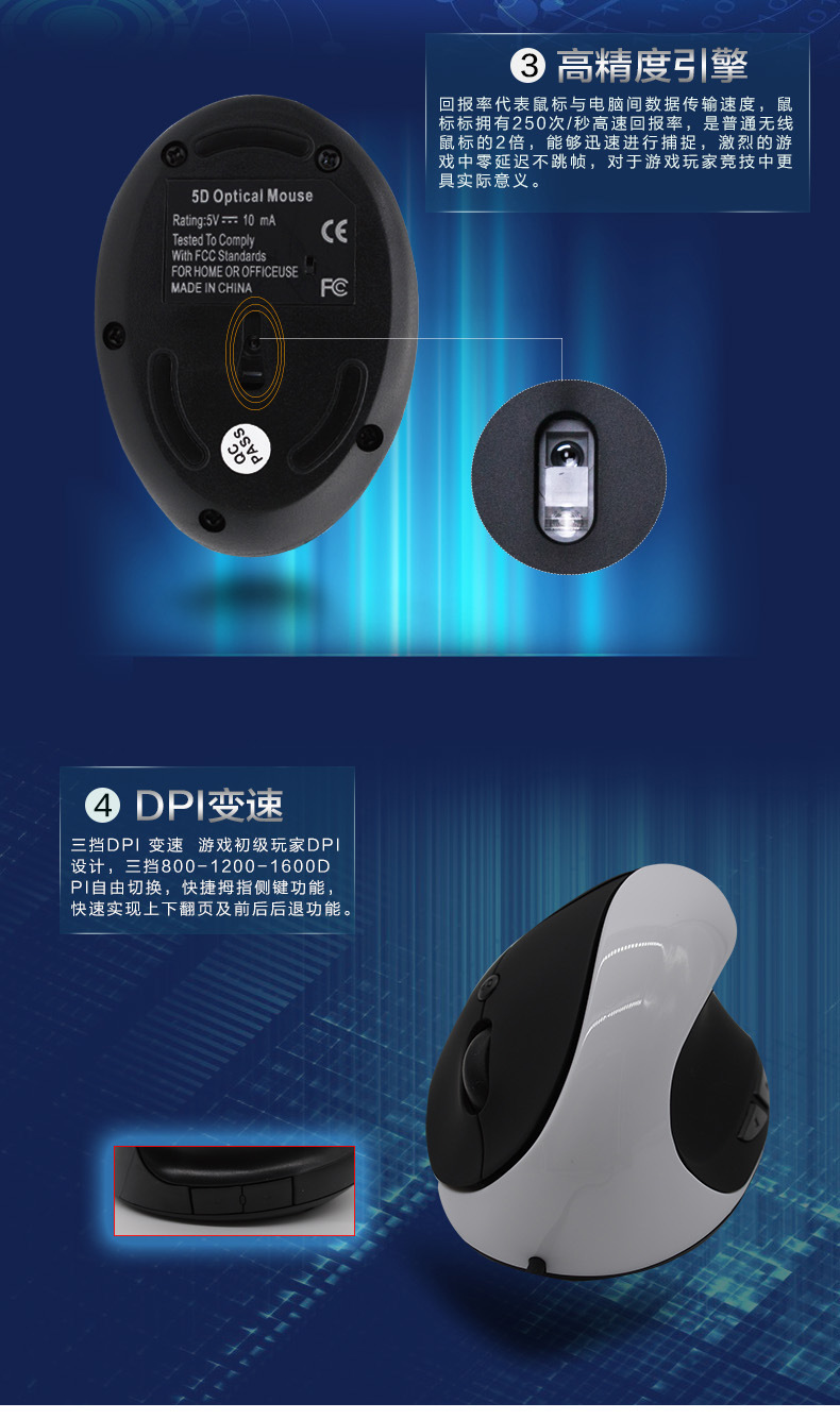 Factory Spot New 6D Wired Vertical Mouse Ergonomic Vertical Wrist Guard Optical Notebook Mouse