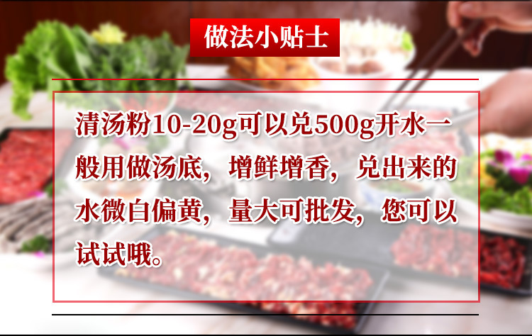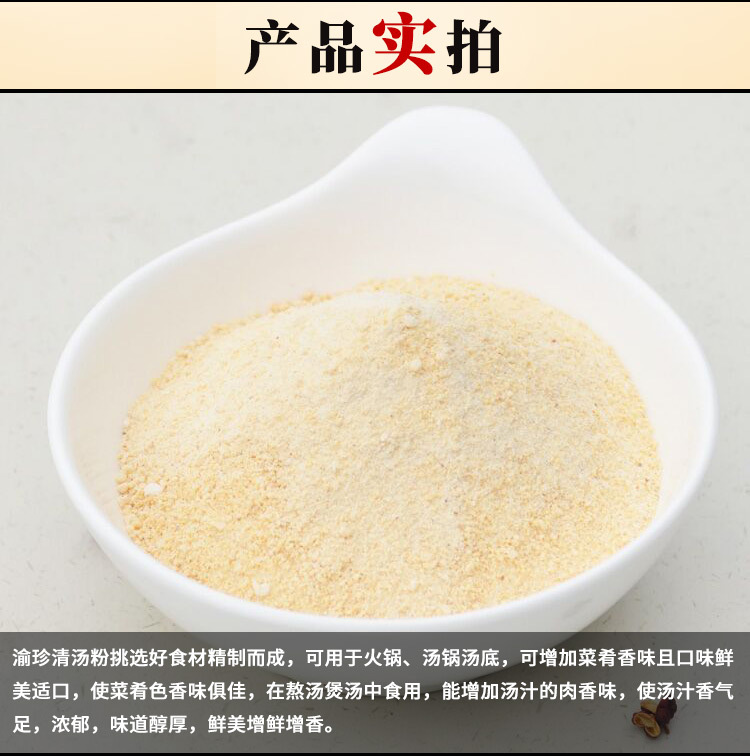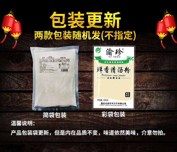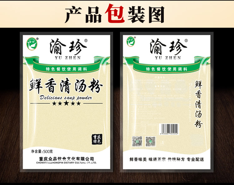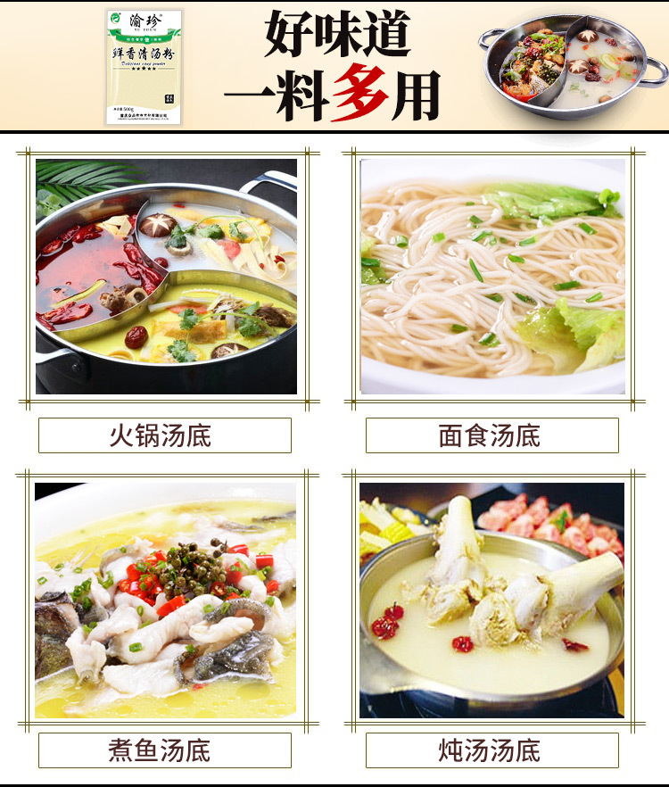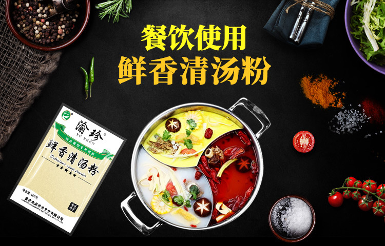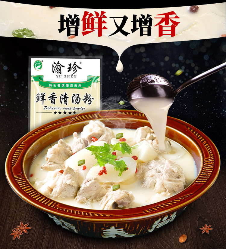 Chongqing Yuzhen clear soup hot pot base material clear soup powder 500g high soup powder seasoning fresh fragrant powder catering factory wholesale