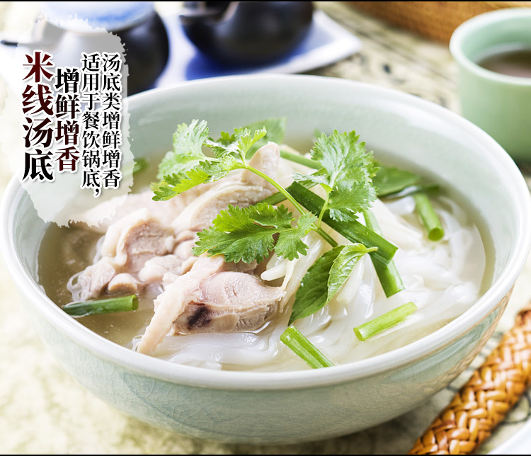 | Raw materials and ingredients | Chicken essence, bone marrow powder, maltodextrin, Creamer, ginger powder, pepper, spices, salt, white sugar |