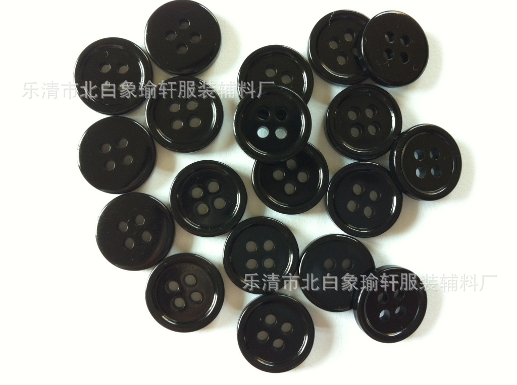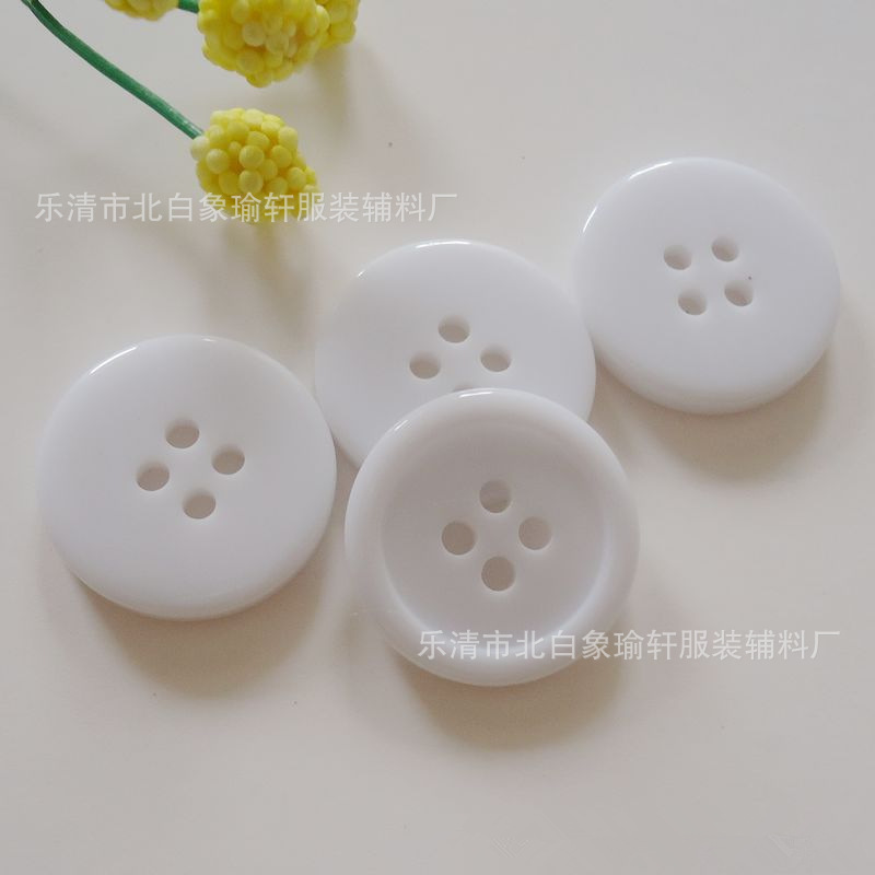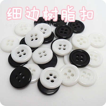 White/Black Four-Hole Thin-Edge Resin Buttons Are Available in Other Colors and Can Be Dyed, Available in Multiple Sizes