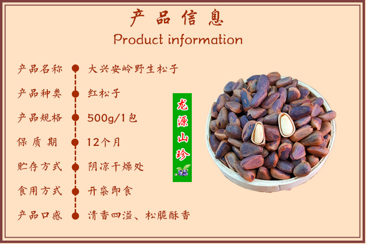 Raw materials and ingredients Wild red pine nuts