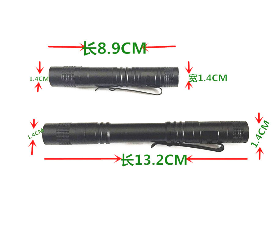 | Color | 8.8cm long 1 section flashlight,13cm long 2 section flashlight,8.8cm long 1 section purple light 395,13cm long 2 section purple light 395,13cm long 2 section flashlight yellow light,13cm long 2-section flashlight red light,13cm long 2 section white army green |