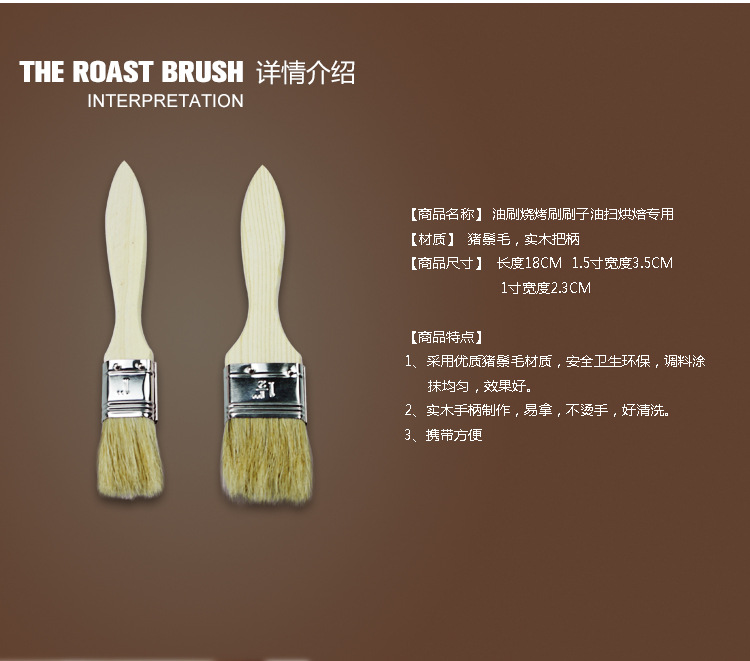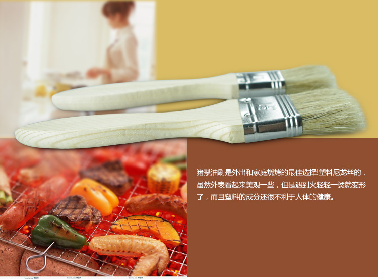 Wooden Handle Barbecue Brush, Pig Bristle Oil Brush, Food Brush, Baking Brush, Two-Pack Wholesale Barbecue Accessories Tools for Grilling