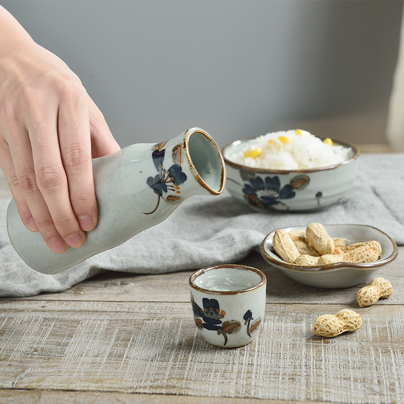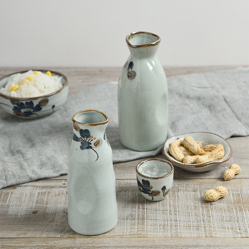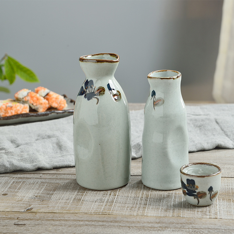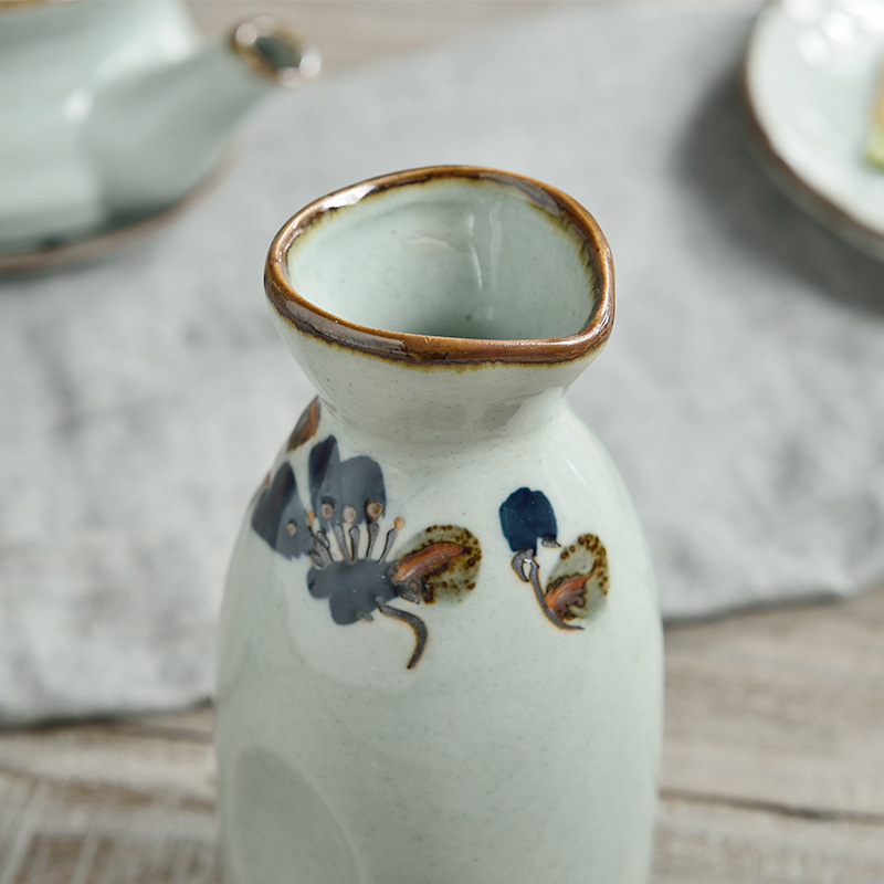 Three-Point Burner Japanese and Korean Style Sake Pot, Yellow Wine Ceramic Tableware for Hotels, Restaurants, and Cooking Shops, Sake Pot Wholesale, Light Luxury Retro Style