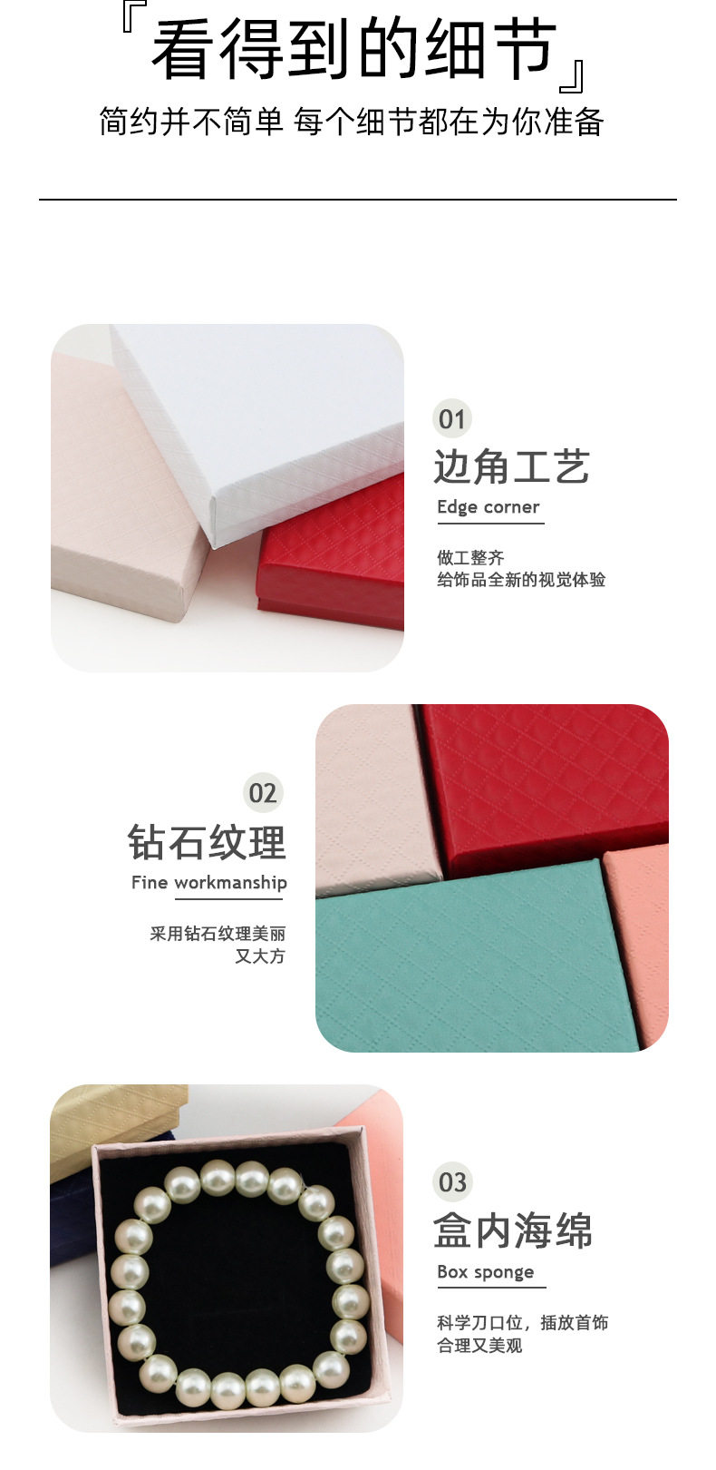 Diamond pattern jewelry box packaging box necklace box pearl jewelry box ring earring box pendant box bracelet box