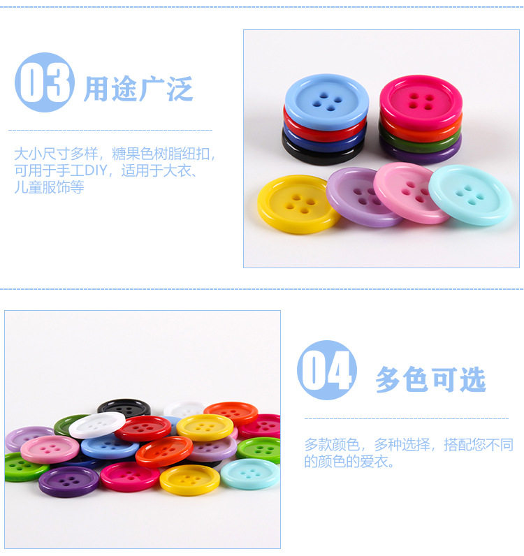 Wholesale Cross-border Candy-colored Buttons High Quality Thin Edge Resin Buttons Four-eye Buttons Colored Work Clothes Buttons