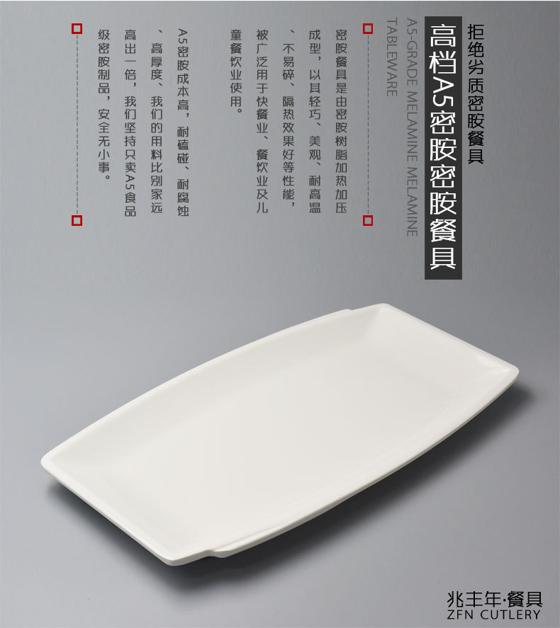 Rice Rolls dish Melamine melamine dish porcelain-like tableware rectangular dish cold dish snacks shaped dish hair high-grade A5