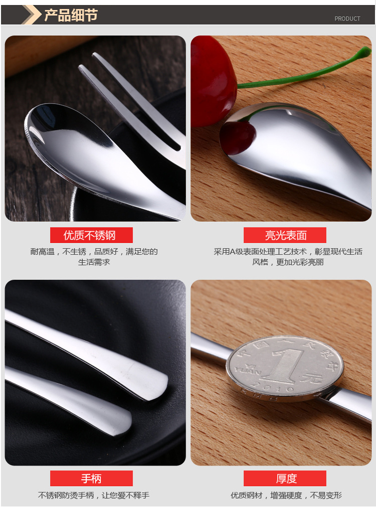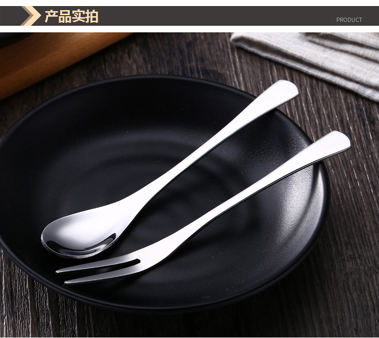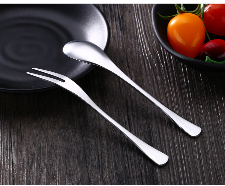Stainless Steel Dessert Spoon Ice Cream Spoon Coffee Stirring Spoon Fruit Fork Household Fork Ice Spoon Tableware suit
