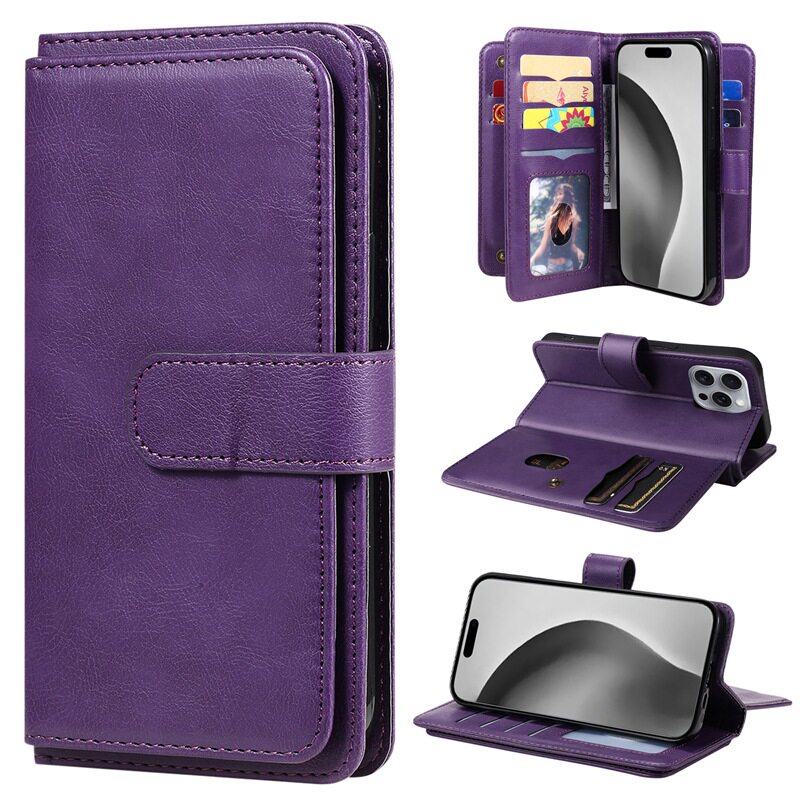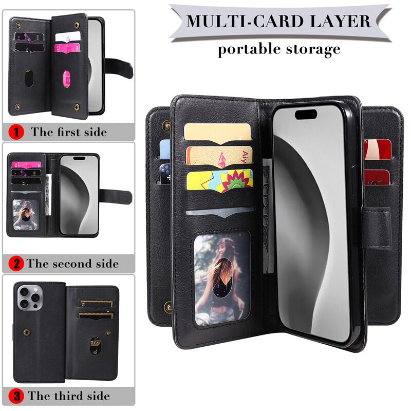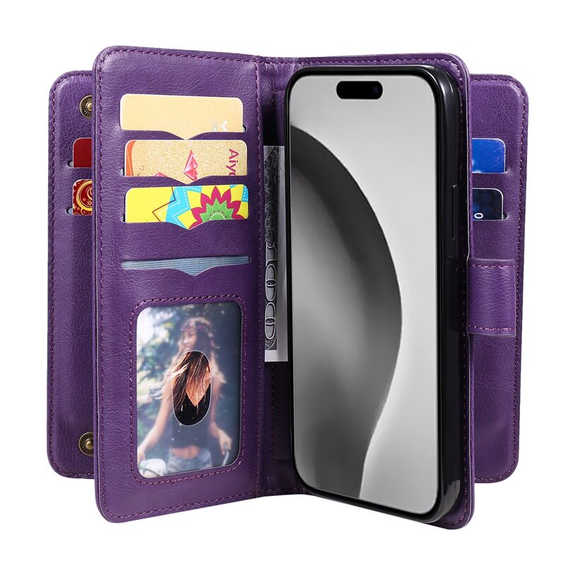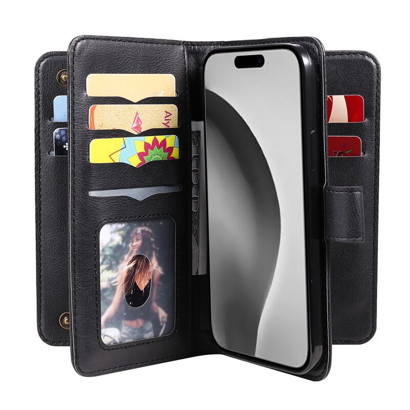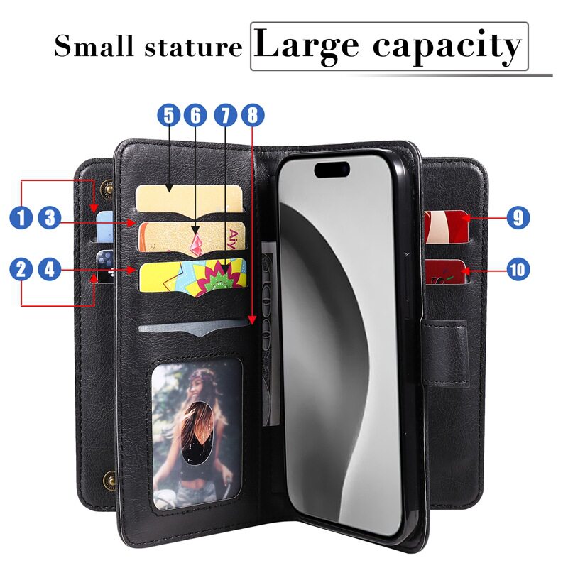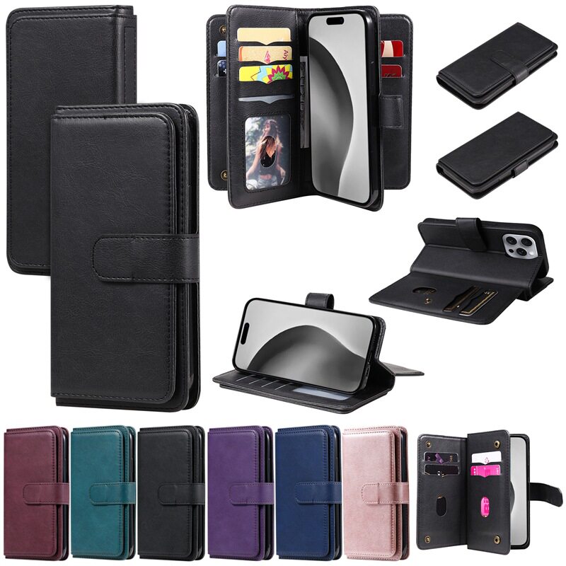 Suitable for iPhone 17 Multifunctional 10-Card Wallet-Style Phone Case, Apple 16 Card-Insertable S25 Google Protective Case