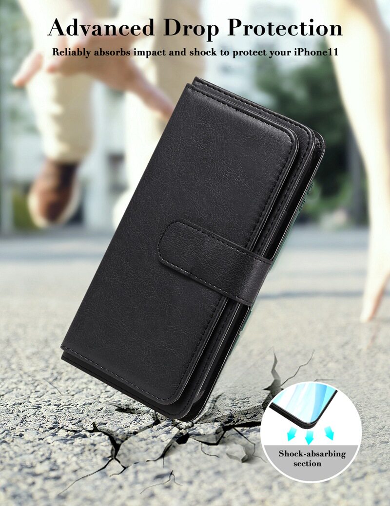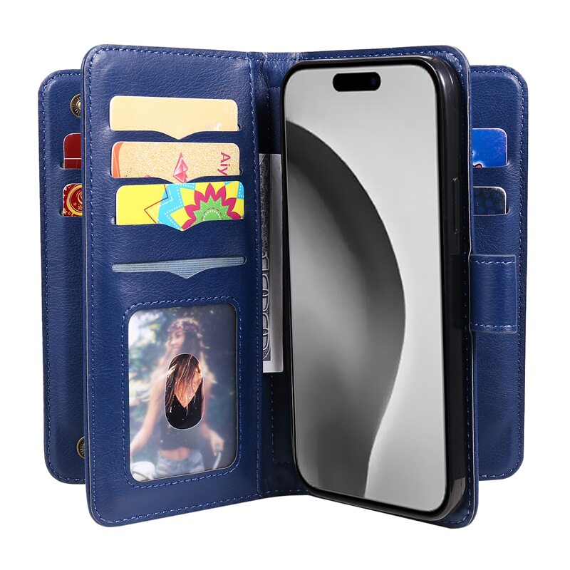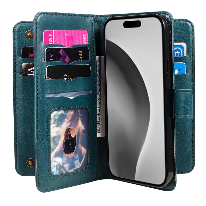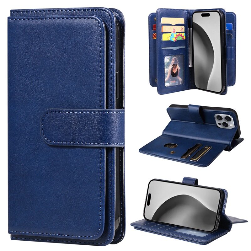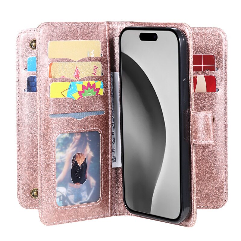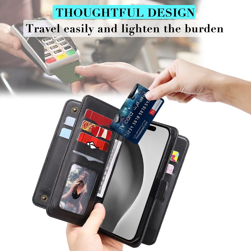 Suitable for iPhone 17 Multifunctional 10-Card Wallet-Style Phone Case, Apple 16 Card-Insertable S25 Google Protective Case
