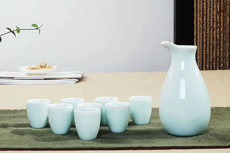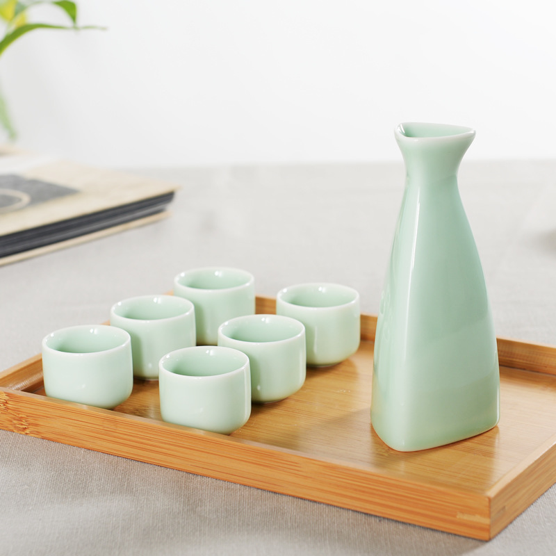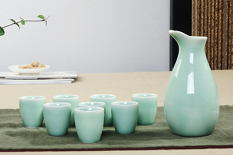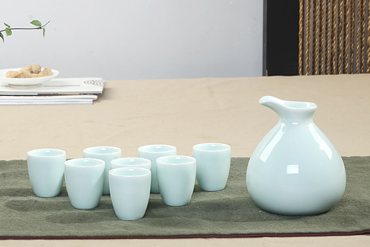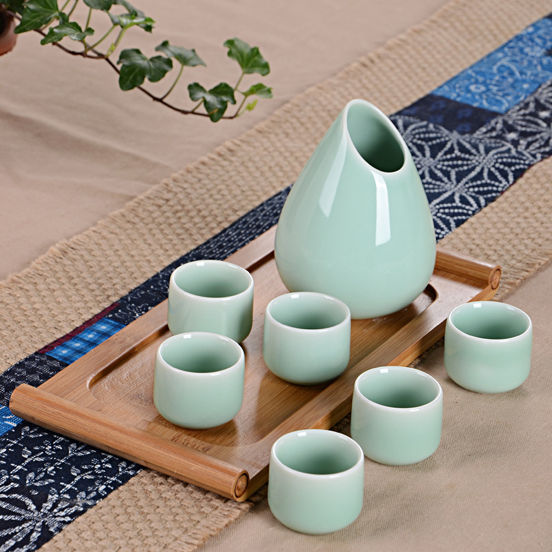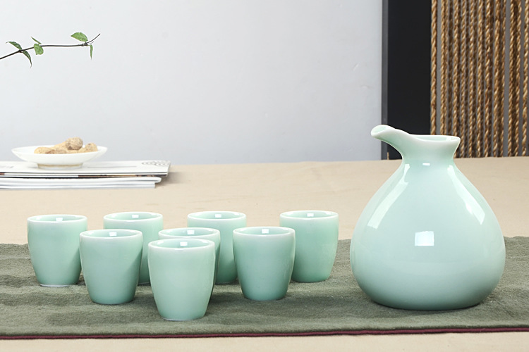 Supply celadon yellow wine separator ceramic wine pot retro style Chinese wine set Wholesale