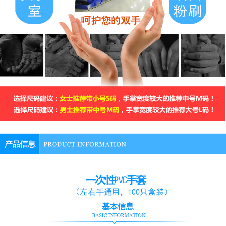Specifications and models XL-plus number * disposable PVC gloves,L-large * disposable PVC gloves,M-medium * disposable PVC gloves,S-small * disposable PVC gloves
