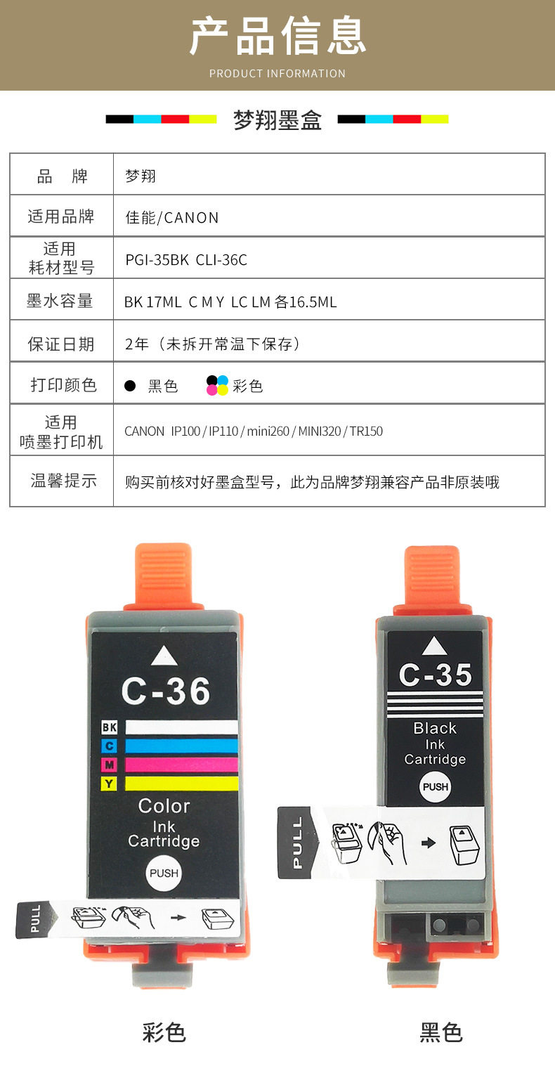 | Model | PGI-35 PGI-35BK CLI-36C PGI35 CLI36 |