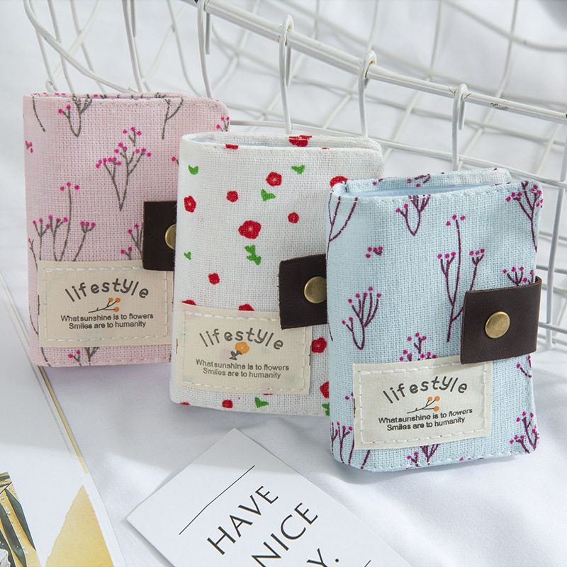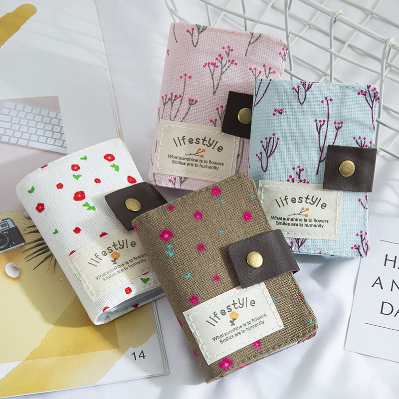 Pastoral Floral Canvas Card Bag Women's Multi-Card ID Bag Student 20 Card Holder Credit Card Bag