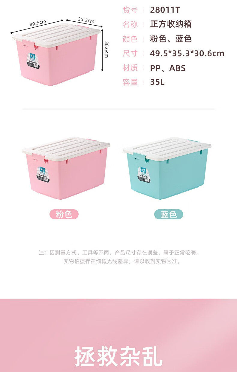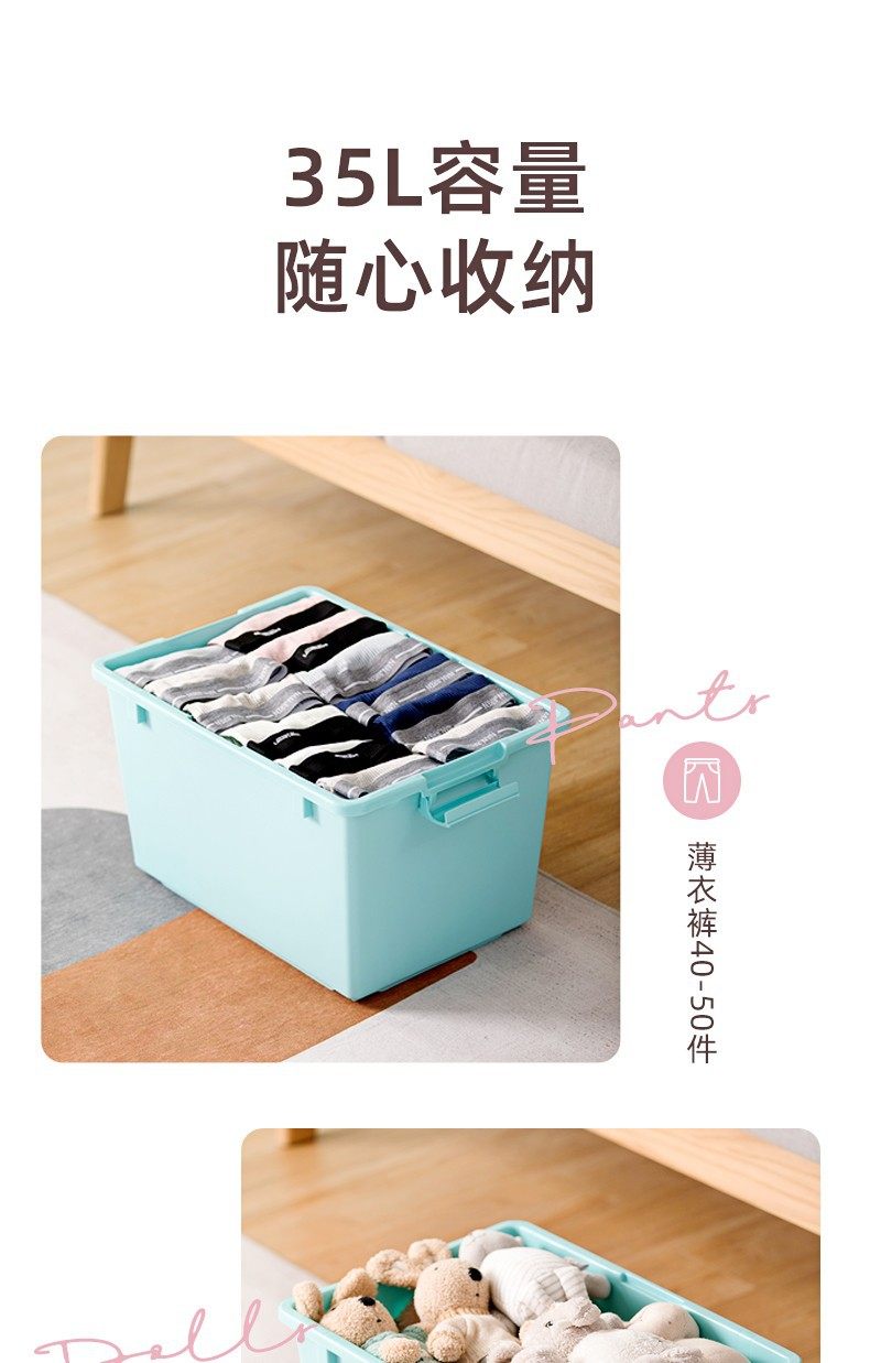 Camellia storage box 35 liters plastic thickened clothes storage box with wheels for household 28011T/28201T