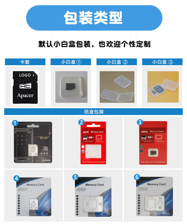 | Capacity | 64gb-u1-c10 high speed card,64gb-u3 high speed card,32gb-u1-c10 high speed card,32gb-u3 high speed card,16gb-u3 high speed card,8gb-u3 high speed card,128gb-u1 high speed card,128gb-u3 high speed card,128MB,256MB,512MB,1GB,2gb--c6 taiwan version as fixed quality version,4gb--c10 taiwan version as fixed quality version,8gb-c10 taiwan version as fixed quality version,16gb-u3 taiwan version as fixed quality version,32gb-u3 taiwan version as fixed quality version,64gb-u3 taiwan version as fixed quality version,128gb-u3 taiwan version as fixed quality version,256gb-u3 taiwan version as fixed quality version,16gb-ak u3 high speed card,32gb-ak u3 high speed card,64GB-C10,64gb c10l 128gb,64gb c10l 256gb,64gb c10l 512gb,64gb c10l 1tb,64gb c10 to 2tb,32GB-C10,32gb c10l 64gb,32gb c10l 128gb,32gb c10l 256gb,32gb c10l 512gb,32gb c10l 1tb,32gb c10 to 2tb,16GB-C10,16gb c10 to 32gb,16gb c10l 64gb,16gb c10l 128gb,16gb c10l 256gb,16gb c10l 512gb,16gb c10l 1tb,16gb c10 to 2tb,8GB-C10,8gb c10 to 32gb,8gb c10 to 64gb,8gb c10 to 128gb,4GB-C10,4gb c10 to 16gb,4gb c10 to 32gb,4gb c10 to 64gb,4gb c10 to 128gb |
