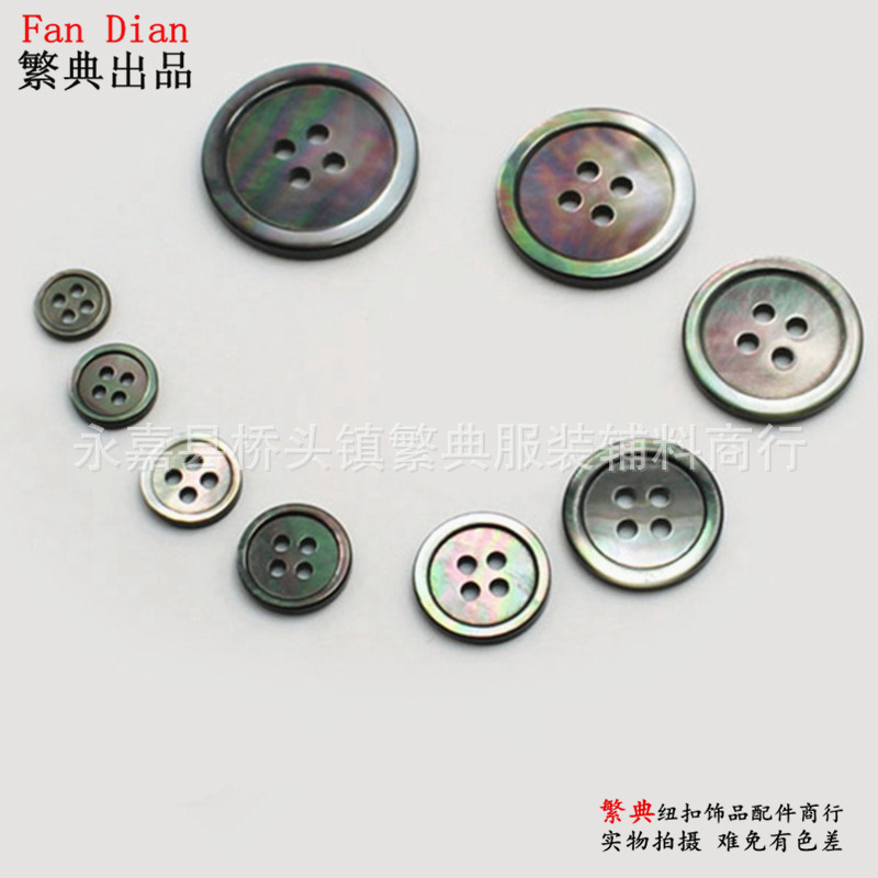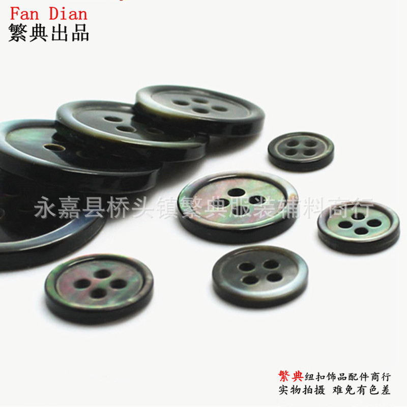 Spot Natural Black Butterfly Shell Button Round Thin Edge Four-eye Black Shell Button Men's Shirt Button