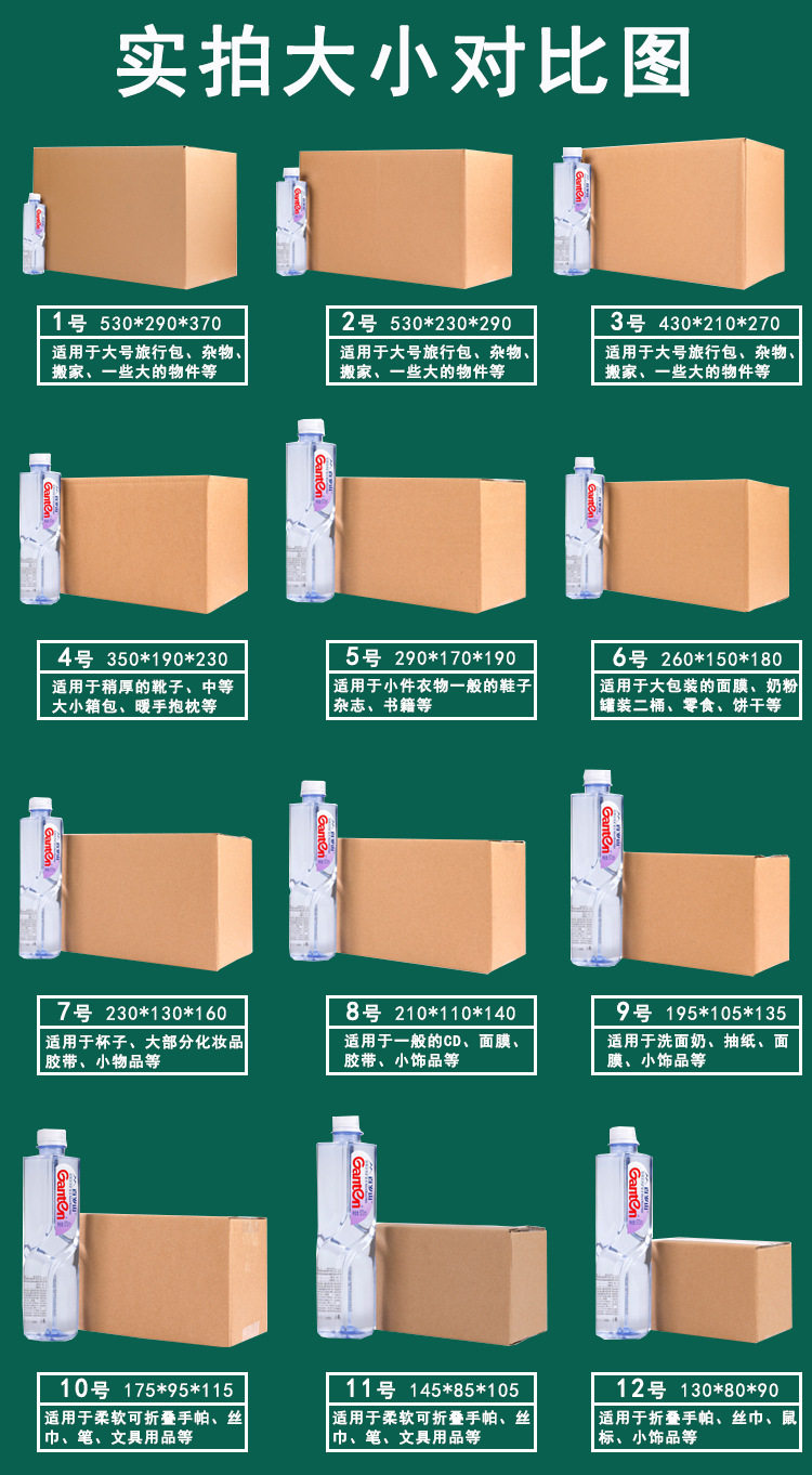 | Specification model | Three layers of ordinary * no. 12 130*80*90mm,Three layers of ordinary *no. 11 145x85x105,Three layers of ordinary * no. 10 175x95x115,Three layers of ordinary * no. 9 195x105x135,Three layers of ordinary * no. 8 210x110x140,Three layers of ordinary * no. 6 260x150x180,Three layers of ordinary * no. 5 290x170x190,Three layers of high quality * no. 12 130*80*90mm,Three layers of high quality *no. 11 145x85x105,Three layers of high quality * no. 10 175x95x115,Three layers of high quality * no. 9 195x105x135,Three layers of high quality *no. 8 210x110x140,Three layers of high quality *no. 7 230x130x160,Three layers of high quality * no. 6 260x150x180,Three layers of high quality * no. 5 290x170x190,Three layers of high quality * no. 4 350x190x230,Three-layer mid-range * no. 12 130*80*90mm,Three-layer mid-range *no. 11 145x85x105,Three-layer mid-range * no. 10 175x95x115,Three-layer mid-range * no. 9 195x105x135,Three-layer mid-range * no. 8 210x110x140,Three-layer mid-range * no. 7 230x130x160,Three-layer mid-range * no. 6 260x150x180,Three-layer mid-range * no. 5 290x170x190,Three-layer mid-range * no. 4 350x190x230,Three-layer mid-range * no. 3 430x210x270,Three-layer mid-range * no. 2 530x230x290,Three-layer mid-range * no. 1 530x290x370,Three layers of high-end * no. 12 130*80*90mm,Three layers of high-end *no. 11 145x85x105,Three layers of high-end * no. 10 175x95x115,Three layers of high-end * no. 9 195x105x135,Three layers of high-end * no. 8 210x110x140,Three layers of high-end *no. 7 230x130x160,Three layers of high-end * no. 6 260x150x180,Three layers of high-end * no. 5 290x170x190,Three layers of high-end * no. 4 350x190x230,Three layers of high-end * no. 3 430x210x270,Three layers of high-end * no. 2 530x230x290,Three layers of high-end *no. 1 530x290x370,Five-layer mid-range * no. 12 130*80*90mm,Five-layer mid-range * no. 11 145x85x105,Five-layer mid-range * no. 10 175x95x115,Five-layer mid-range * no. 9 195x105x135,Five-layer mid-range * no. 8 210x110x140,Five-layer mid-range * no. 7 230x130x160,Five-layer mid-range * no. 6 260x150x180,Five-layer mid-range * no. 5 290x170x190,Five-layer mid-range * no. 4 350x190x230,Five-layer mid-range * no. 3 430x210x270,Five-layer mid-range * no. 2 530x230x290,Five-layer mid-range * no. 1 530x290x370,Five-layer mid-range*500*400*400mm without buckle,Five-layer mid-range *600*400*500mm without buckle,Five-layer mid-range *700*400*320mm without buckle,Five-layer mid-range*700*500*500 without buckle,Five-layer high-end * no. 12 130*80*90mm,Five-layer high-end *no. 11 145x85x105,Five-layer high-end * no. 10 175x95x115,Five-layer high-end * no. 9 195x105x135,Five-layer high-end * no. 8 210x110x140,Five-layer high-end *no. 7 230x130x160,Five-layer high-end * no. 6 260x150x180,Five-layer high-end * no. 5 290x170x190,Five-layer high-end * no. 4 350x190x230,Five-layer high-end * no. 3 430x210x270,Five-layer high-end * no. 2 530x230x290,Five-layer high-end *no. 1 530x290x370,Five-layer high-end *500*400*400mm without buckle,Five-layer high-end *600*400*500mm without buckle,Five-layer high-end *700*400*320mm without buckles,Five-layer high-end *700*500*500 without buckles |