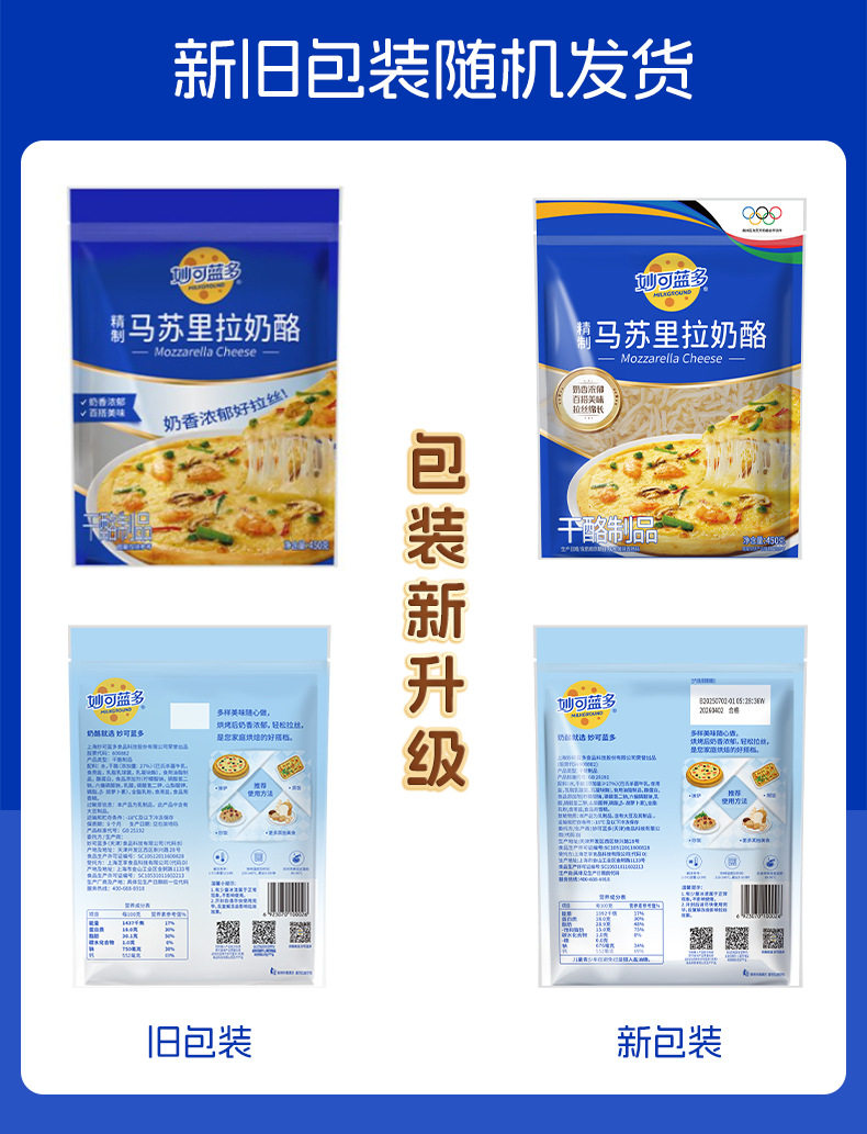 Mioclando Mozzarella Cheese Slices Crushed Brushed Household Pizza Cheese Baking Materials 450g*24 Full Box