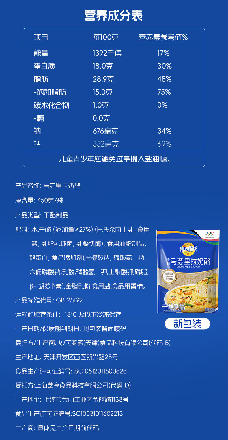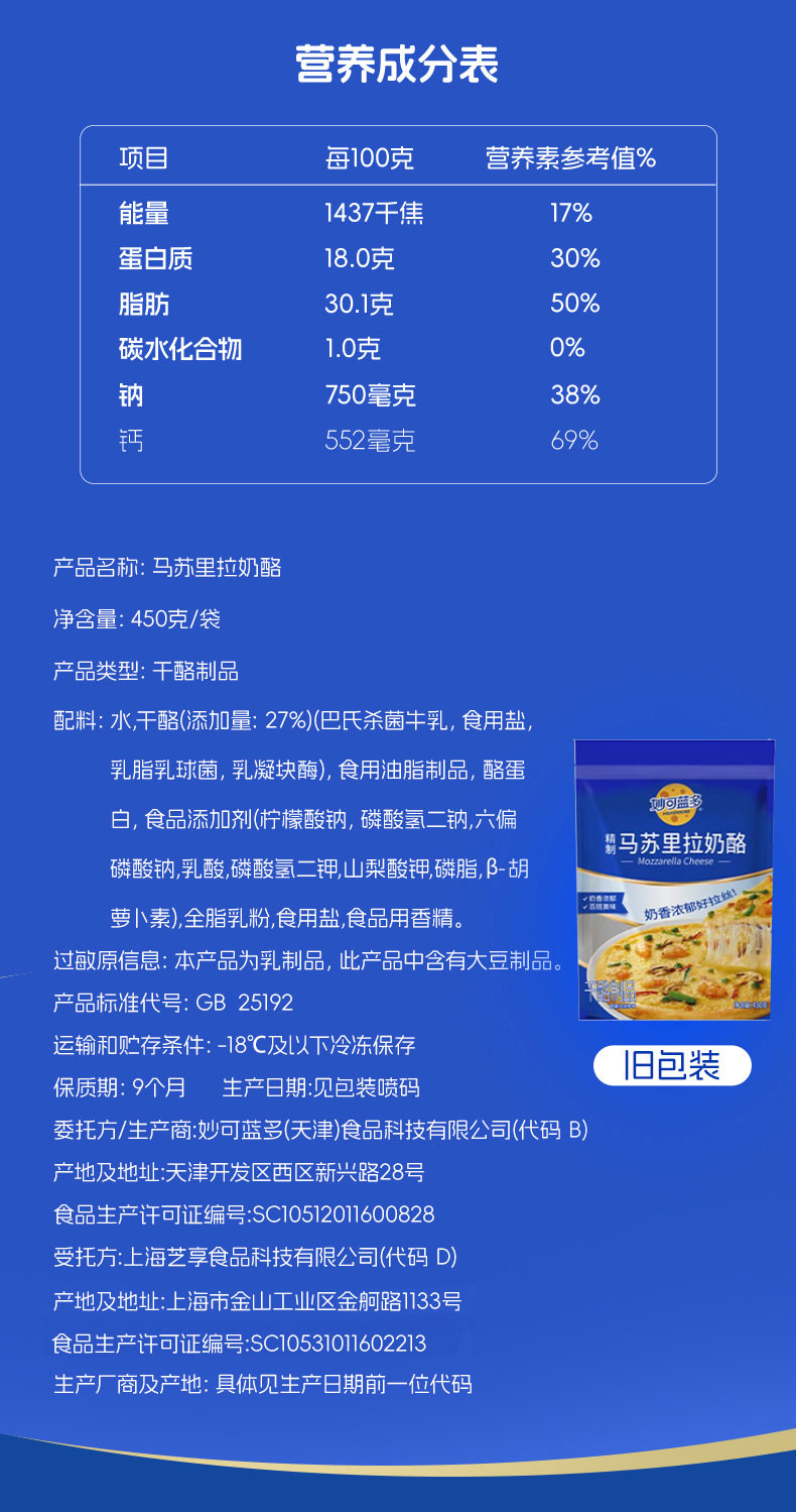 | Variety | Mozzarella cheese 450g |