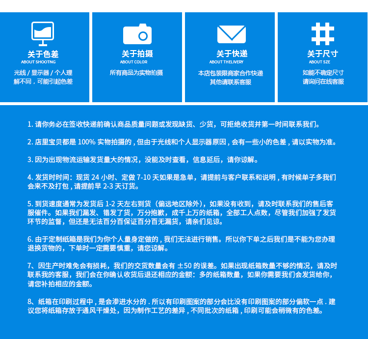 | Corrugated | Customized ordinary carton,Custom color carton,Custom monochrome aircraft box,Custom color aircraft box,Custom Bubble Film |