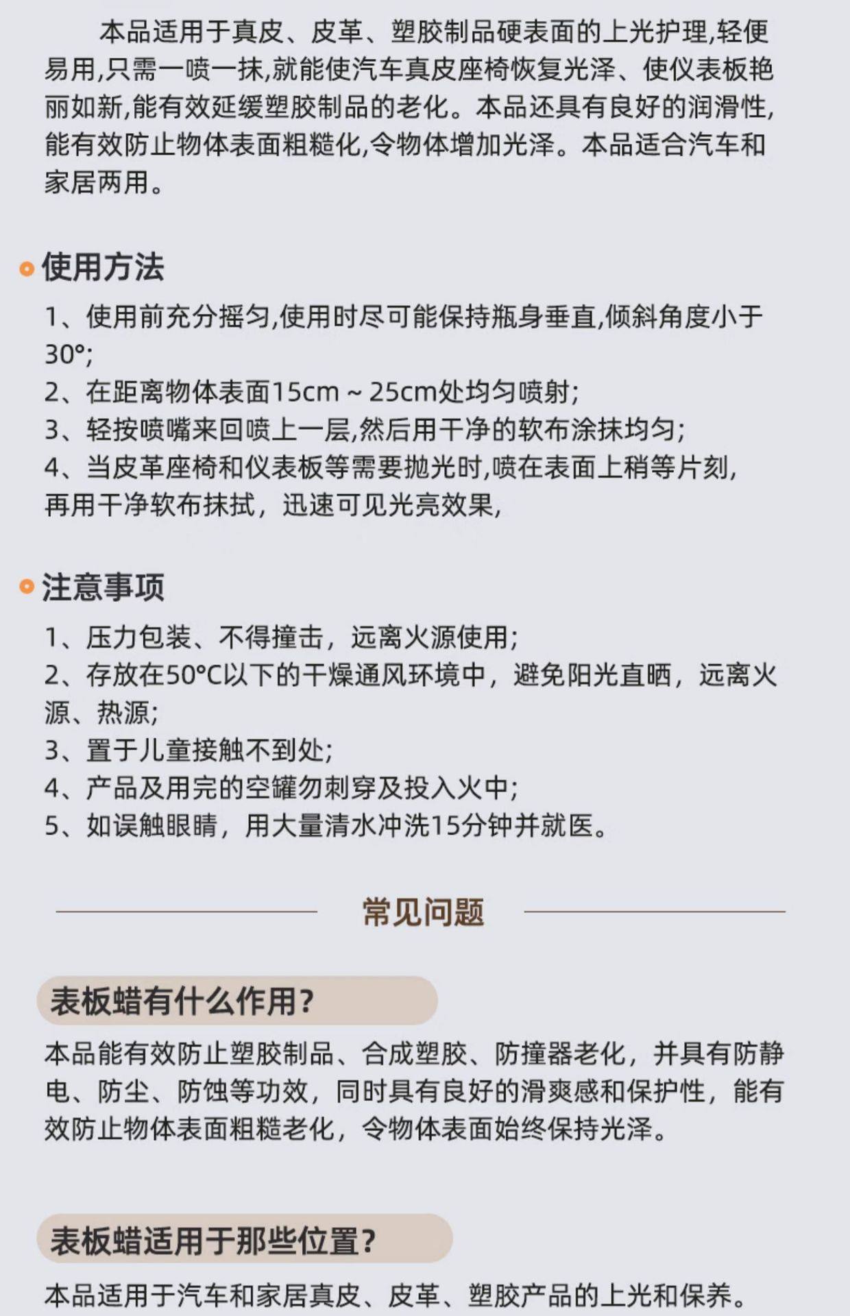 | Main scope of application | Car interior leather protection |